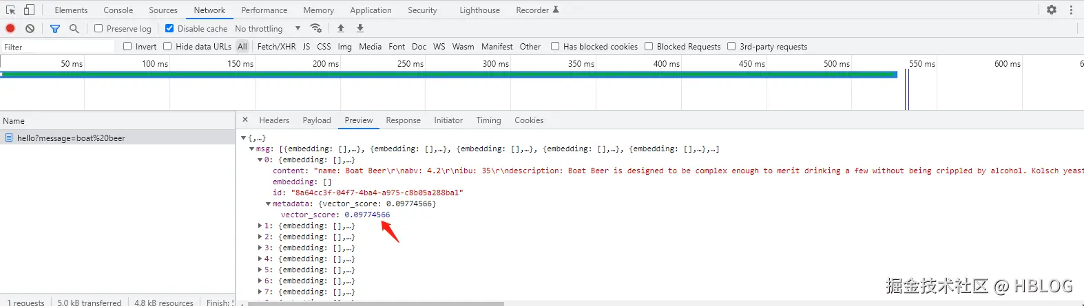访问http://127.0.0.1:8088/hello 进行0 相似度搜索(top 10),返回得分前10的数据