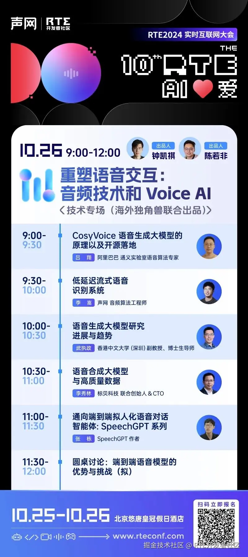 **等等!**除了本场论坛,你还可以在 10 月 26 日一天逛遍 5 场技术论坛和约 30 场主题分享和圆桌讨论,一起来探索 GenAI、Voice AI、空间计算……与 RTE 的碰撞吧!