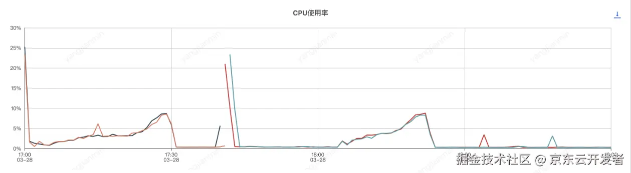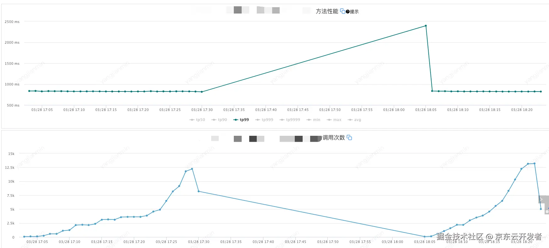 压测分为了两个阶段,分别是组件开启和组件关闭两次,前半部分是组件开启的情况,后半部分是组件关闭的情况