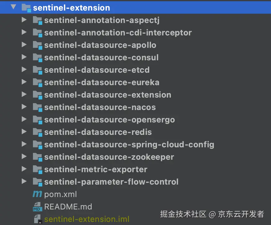 •中间件(如:zookepper、nacos、eureka、redis等):Sentinel源码extension包里提供了类似的实现,如下图