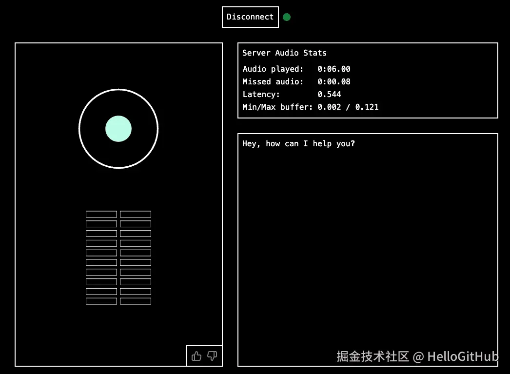 该项目利用先进的流式神经音频编码器 Mimi,实现了一个能够进行实时、同时听和说(全双工)、自然对话的语音系统。它不仅能听懂你说的话,还可以像正常对话一样回答你的问题,整个过程几乎没有延迟,并允许在对话中随时插话。但目前仅支持用英语交流,可以用来练习英语口语,有助于克服开口说英语的障碍,因为对方只是一个 AI。