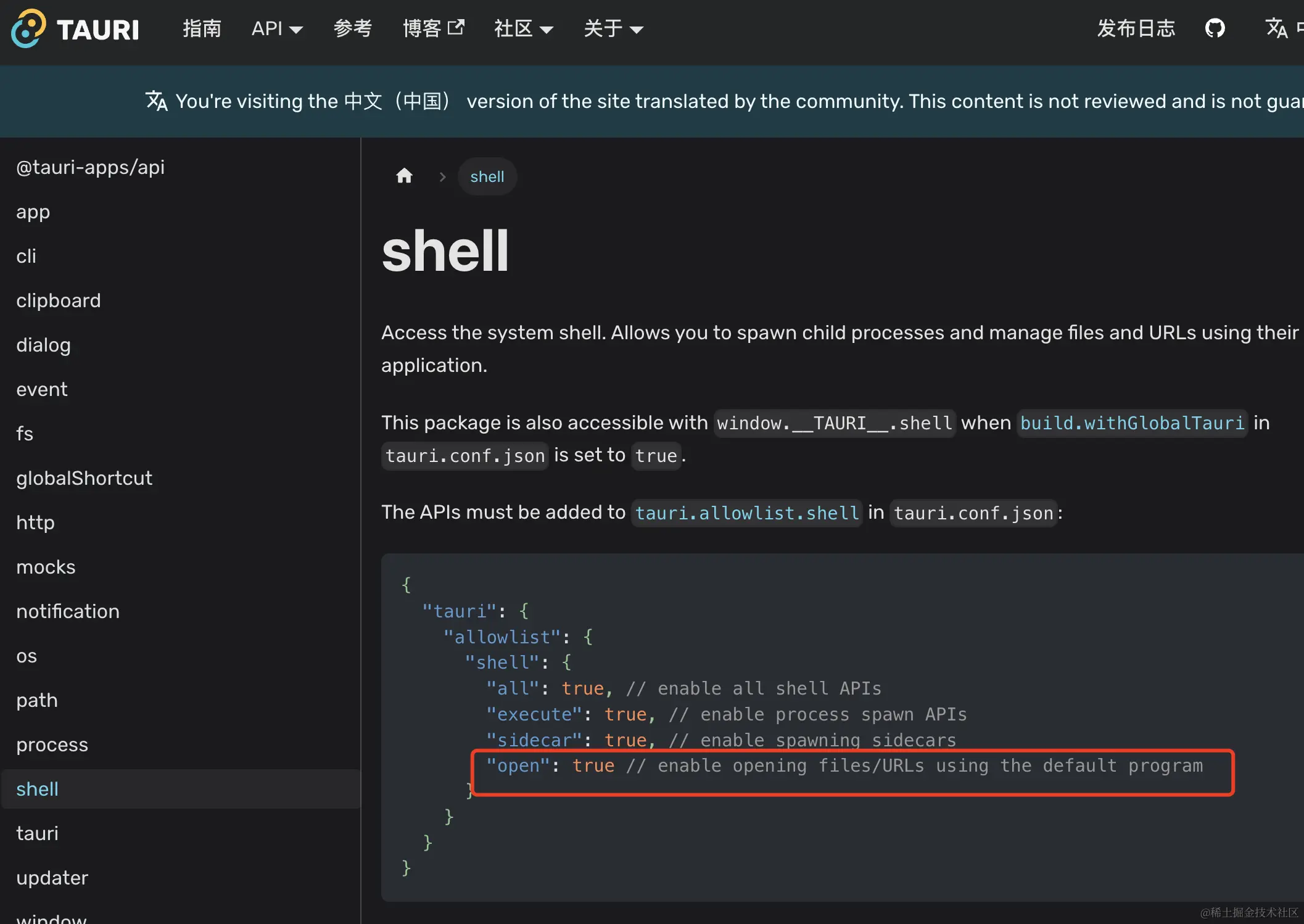 有能力的可以看官方文档:shell | Tauri Apps