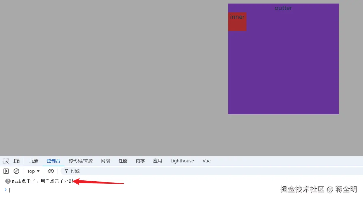 其实蒙版是现在比较主流的一种方法,很多组件库都是用的这个方法,本质就是在要监测的元素下面加个蒙版元素,通过为蒙版添加点击事件来判断用户点击了外界。