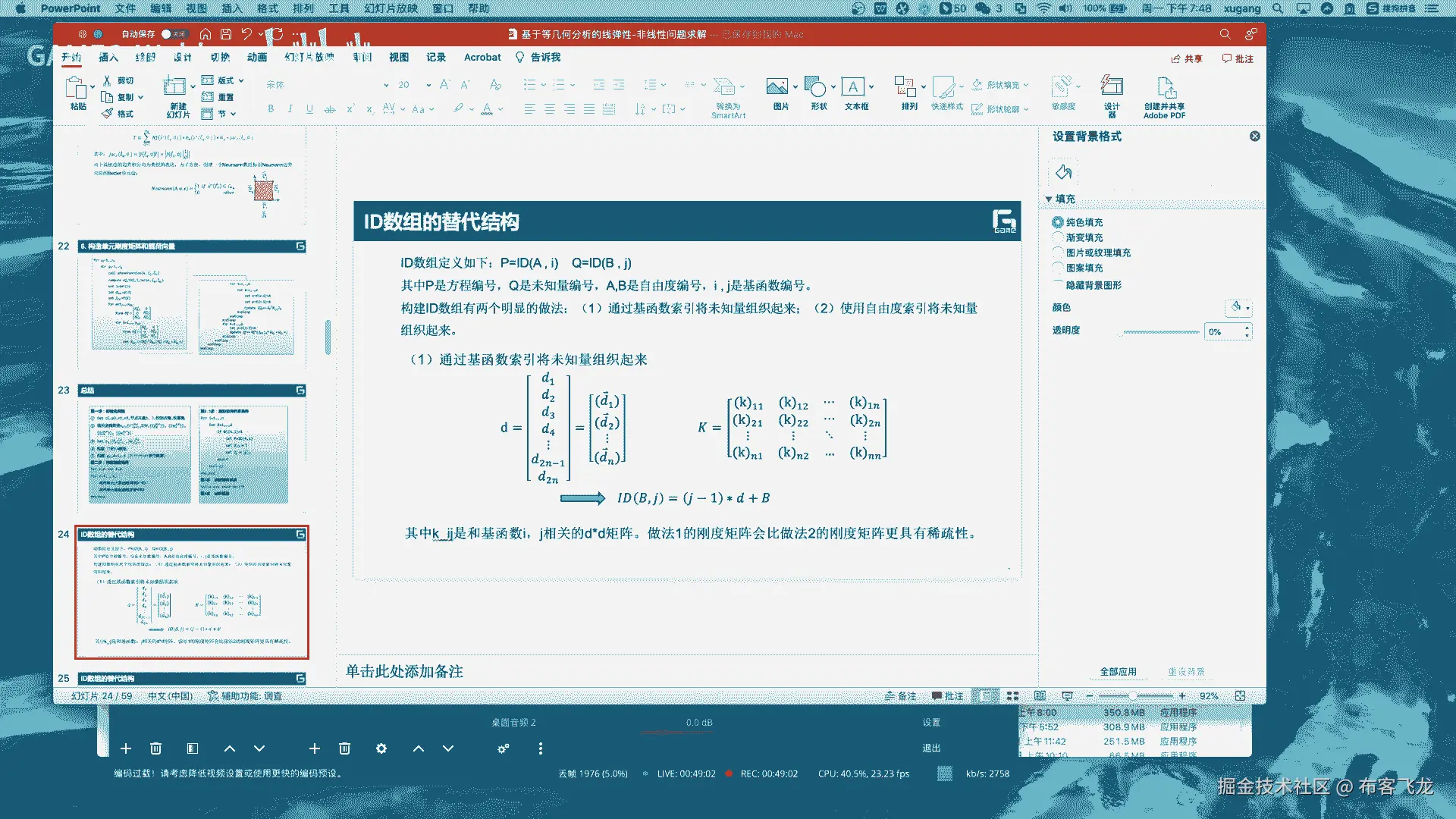 那么啥在这里面也是涉及到比较重要的,就是我怎么样去呃,计算你这个呃先超短线问题里面,他的单元刚度矩阵对吧,对这个设计变成这个求导公式啊,上回我要涉及到的这个求导公式,也是这个矩阵的求导是吧。