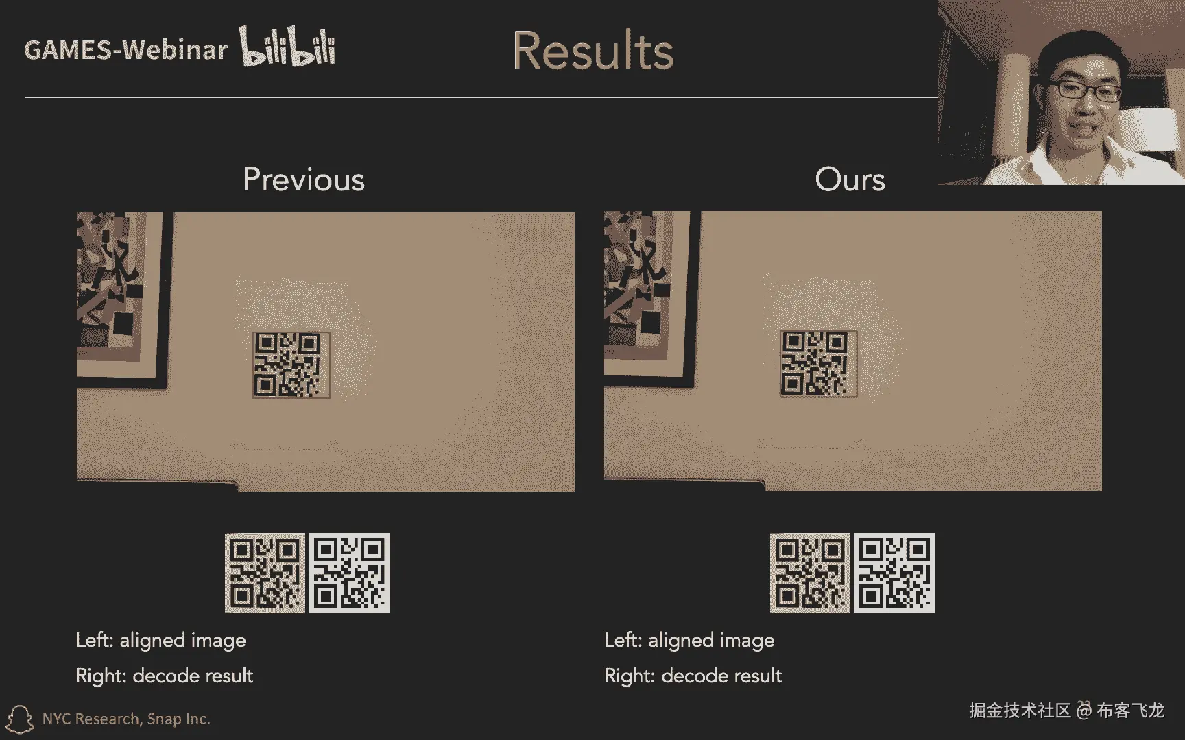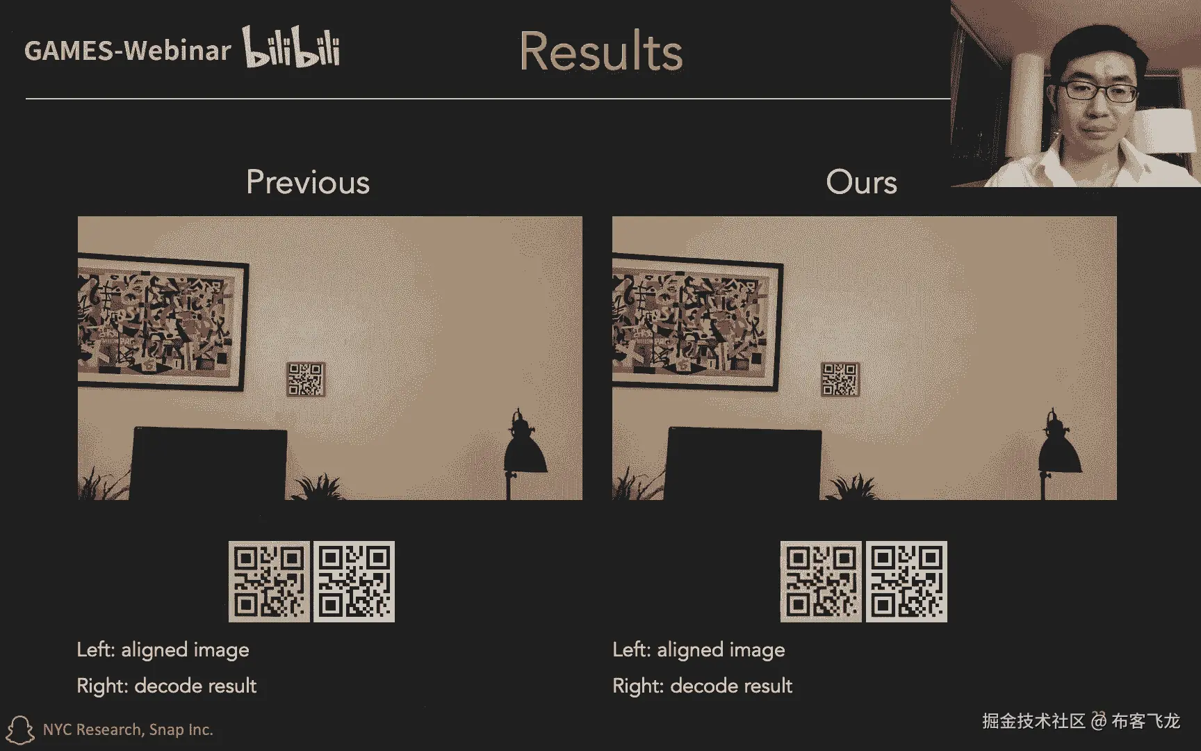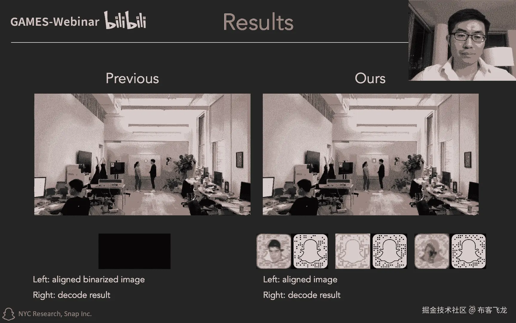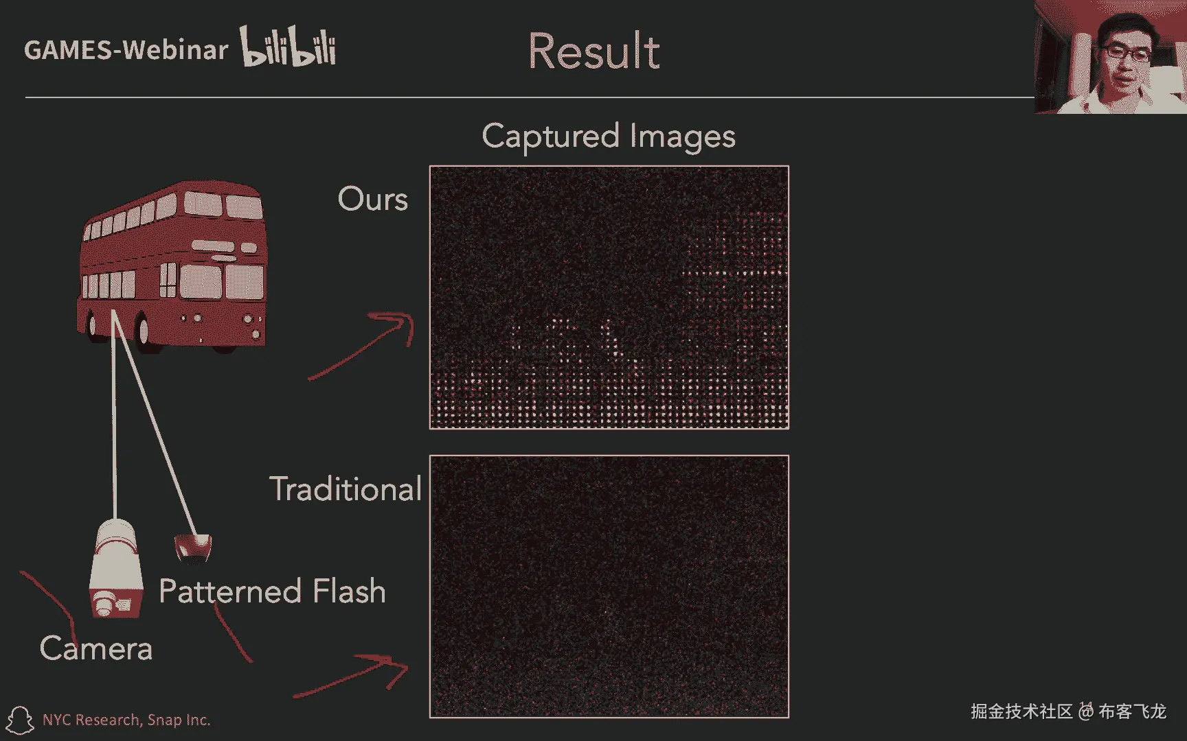而是很多图像的叠加就会产生了不,我们就希望说诶我们是否能用算法计算全息的方法,通过预计算在photogram上做视频coding,那通过这个公式的decoding,把这个blog给尽可能弱化,消除影响。