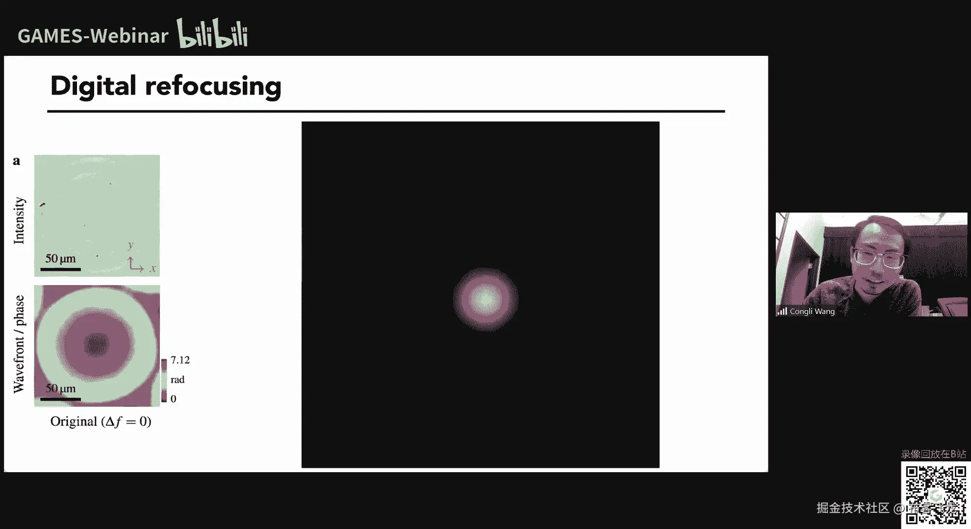 他的这个呃杂光会少一些等等,所以这其实也是一个缺道夫,这个怎么说呢,就是,相位和振幅,它实际上代表的是波长,wiflag,那波长就是指物体发出的这个这个这个这个整个的三维光场的信息,那关于这点的话。