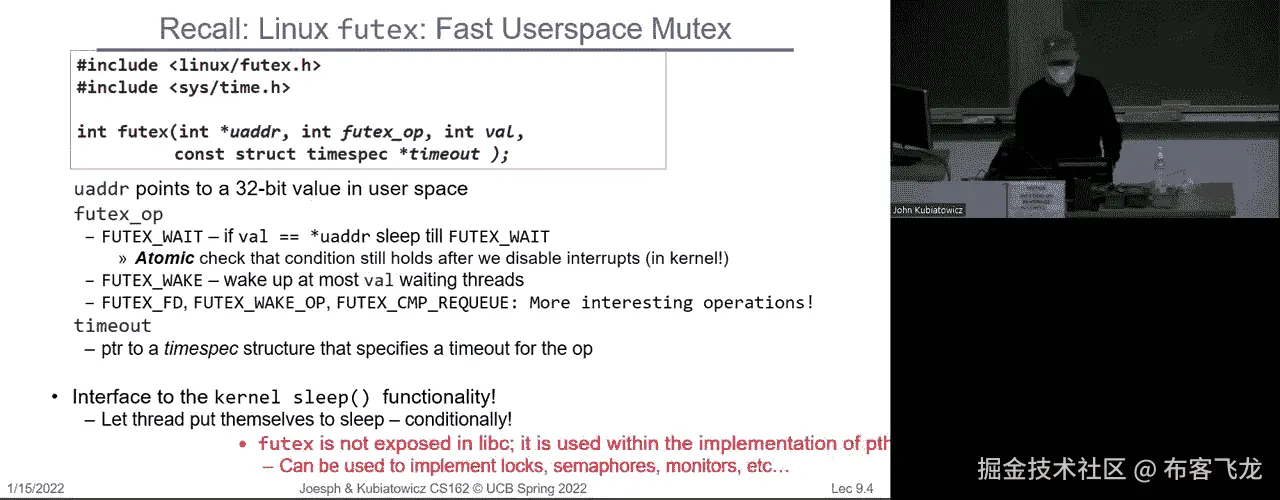 so you're the only thread grabbing and releasing this particular implementation has a really nice property that you never go into the kernel。