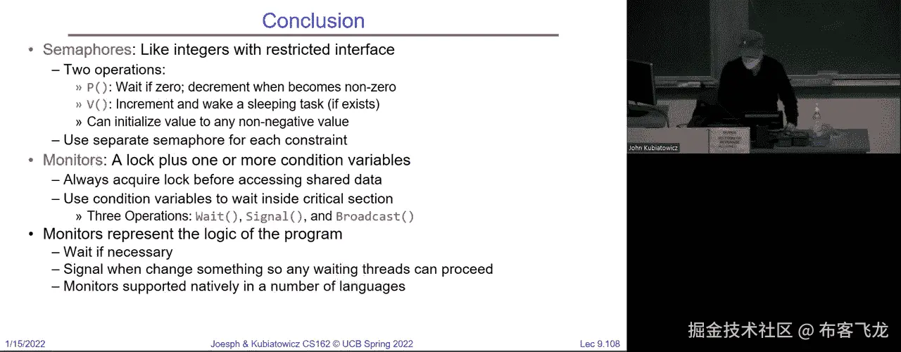 P9:Lecture 9: Semaphores (Con't), Monitors, and Readers Writers - RubatoTheEmber - BV1L541117gr