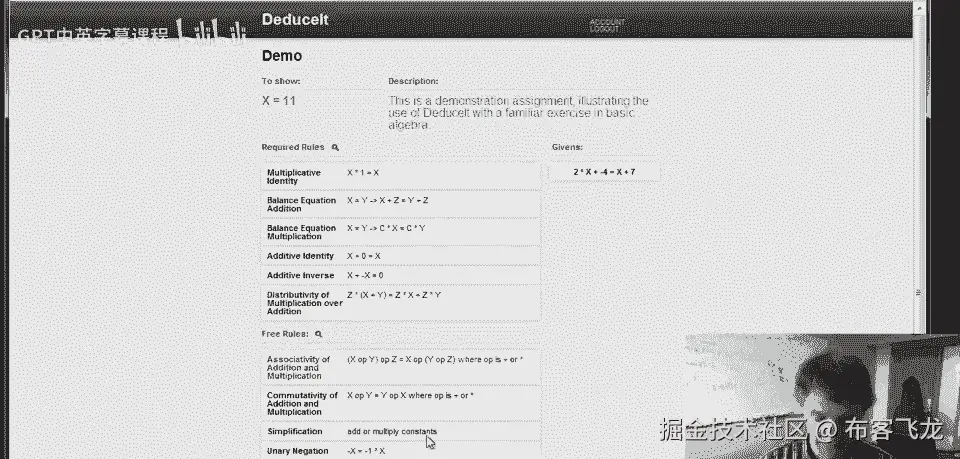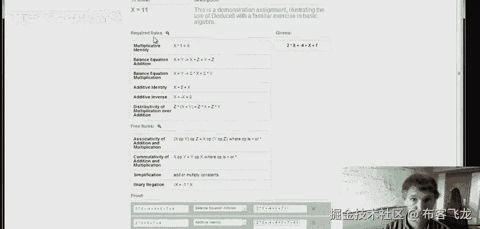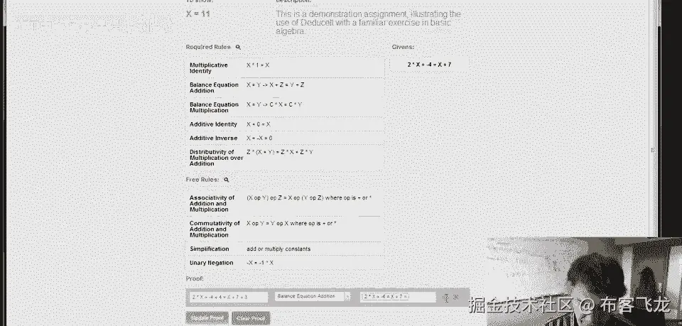 系统知道我们已经完成了作业,这是背后的基本想法,演绎它,这个例子虽为代数,任何形式系统皆可,呈现练习规则集。
