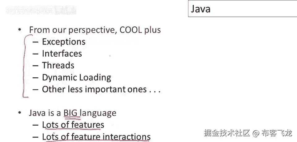 因此,总结并结束我们对Java的讨论,我认为Java是一种按生产标准做得很好的语言,它做得非常出色,因此,它是当今使用中设计最佳、规格最佳的语言之一,它将几个重要思想引入主流,所以当它是新的。