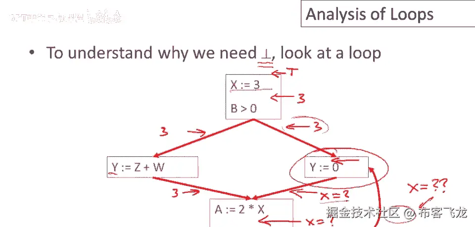 但允许你开始,因此,由于循环,所有点,所有程序点在所有时间都必须有值,因此我们将分配一个初始值,这就是bottom的作用,bottom意味着到目前为止我们知道控制从未到达这一点,记住这一点。