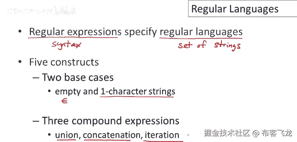 总结,词法分析的目标是将输入流分割为词素,好的,我们将划下分割线在字符串中,决定词素边界,并识别每个词素的标记,正因为从左到右扫描,有时需要前瞻,有时需要预览输入流以确定当前字符串。