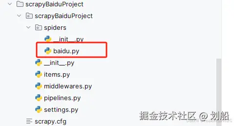 然后再spiders文件夹下就多了一个 baidu.py。这里面主要写我们的解析逻辑