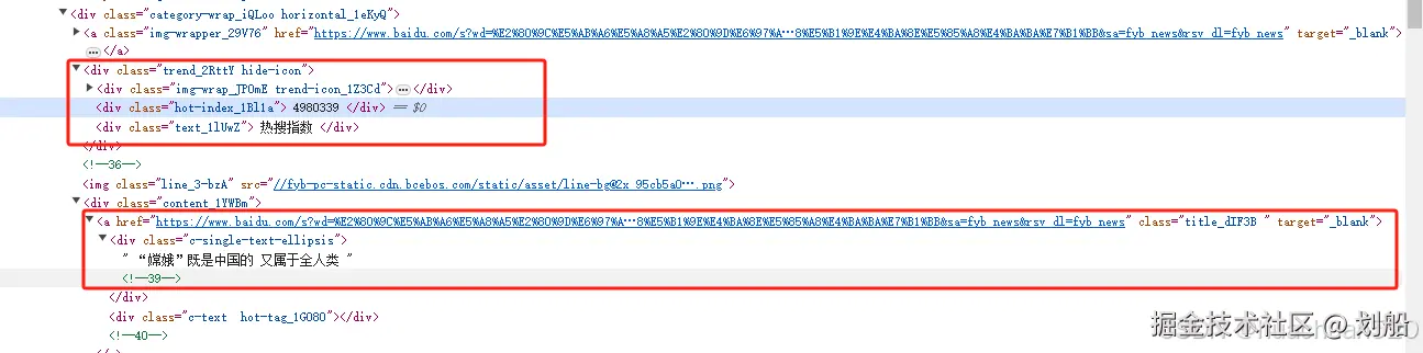 我们看一下百度热榜的html源码