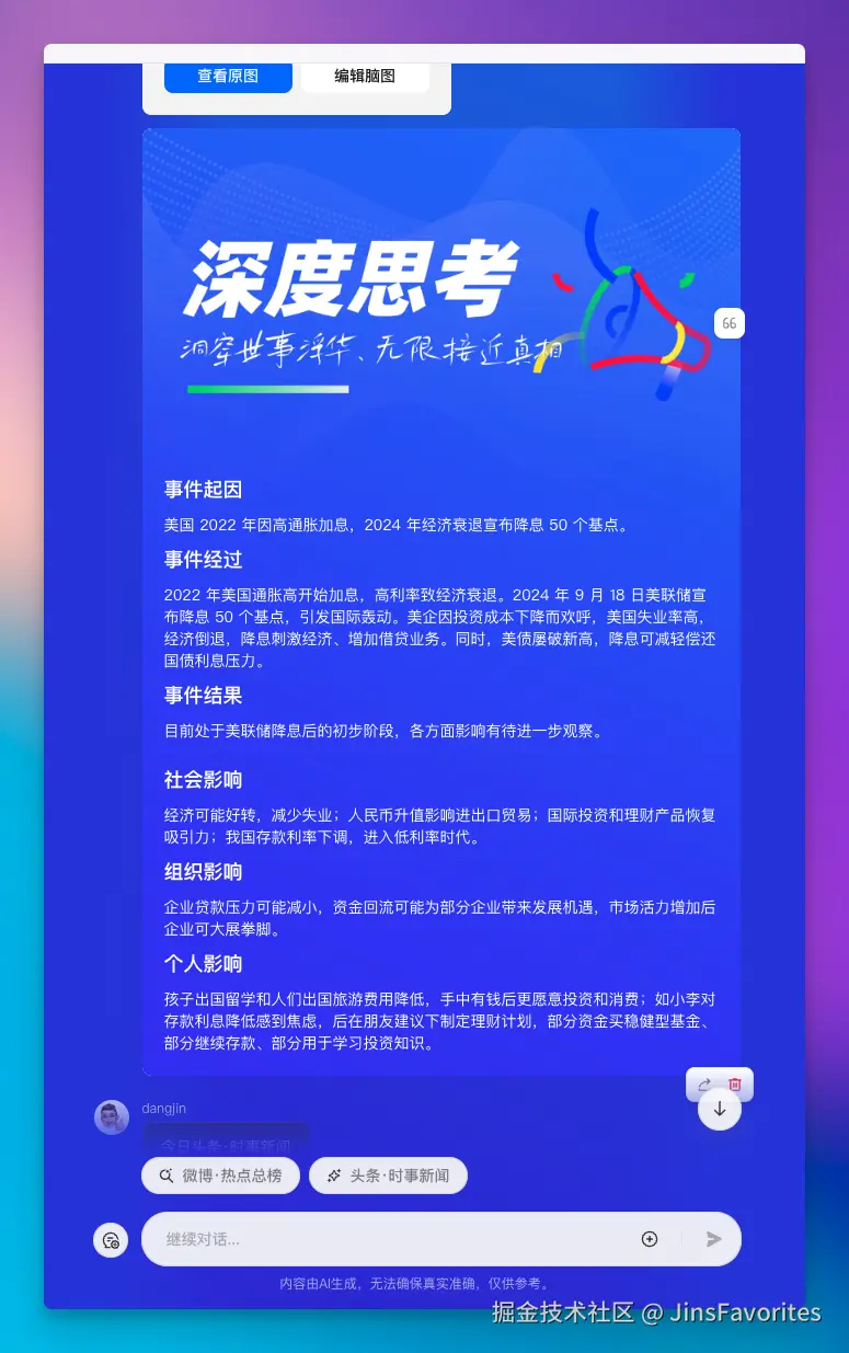洞悉热像-Bots是一个帮助用户快速分析网络热点事件起因、经过、结果的Bot,该Bot采用单Agent模式,结合豆包·Function call模型和各种工具,实现了从信息搜索到分析总结的全流程自动化。本教程将详细介绍该Bot工作流的搭建以及如何使用卡片组件提升Bot的交互体验。