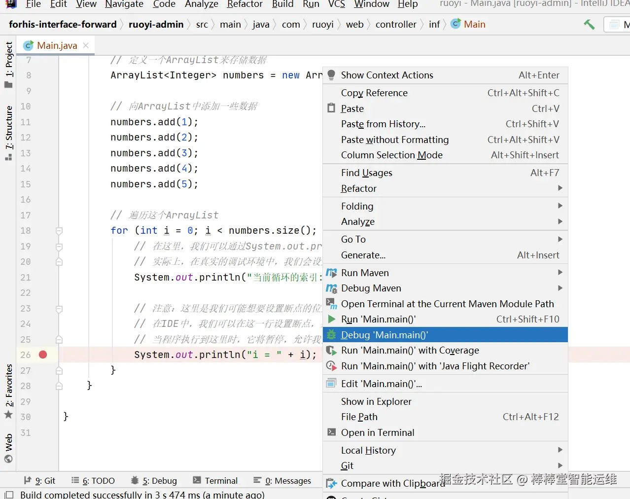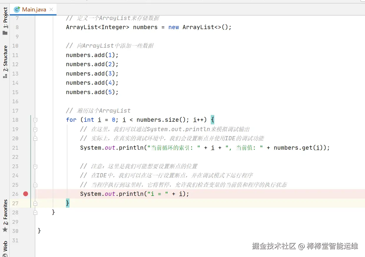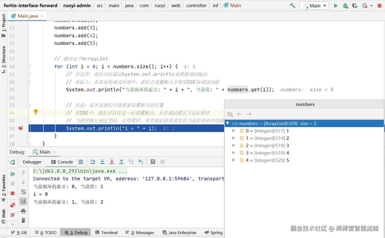 System.out.println("当前循环的索引: " + i + ", 当前值: " + numbers.get(i));