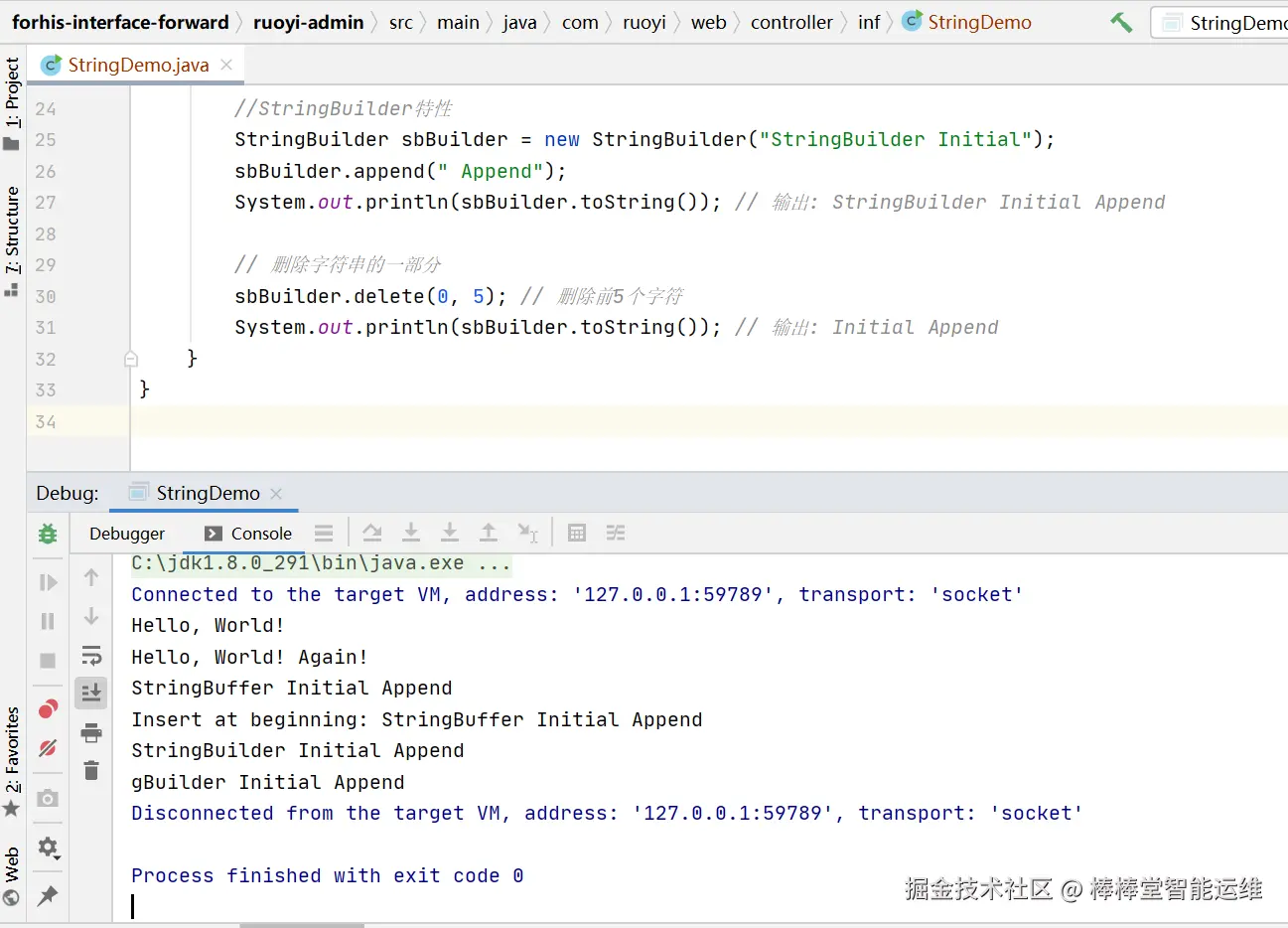 System.*out*.println(sbBuilder.toString()); *// 输出: StringBuilder Initial Append*