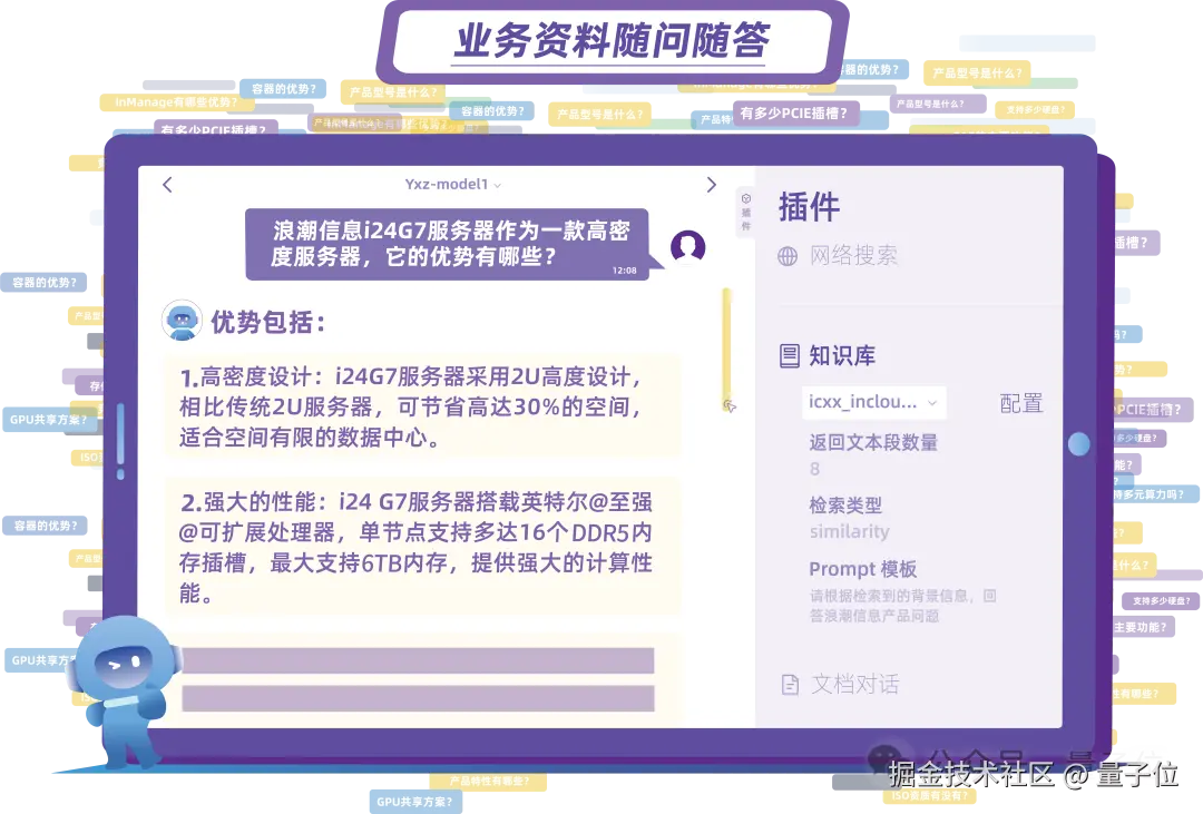 “元小智” 还凭借智能问答功能,成为了浪潮信息售前专属的 “百科全书”,辅助产品信息查阅与专业内容生产。