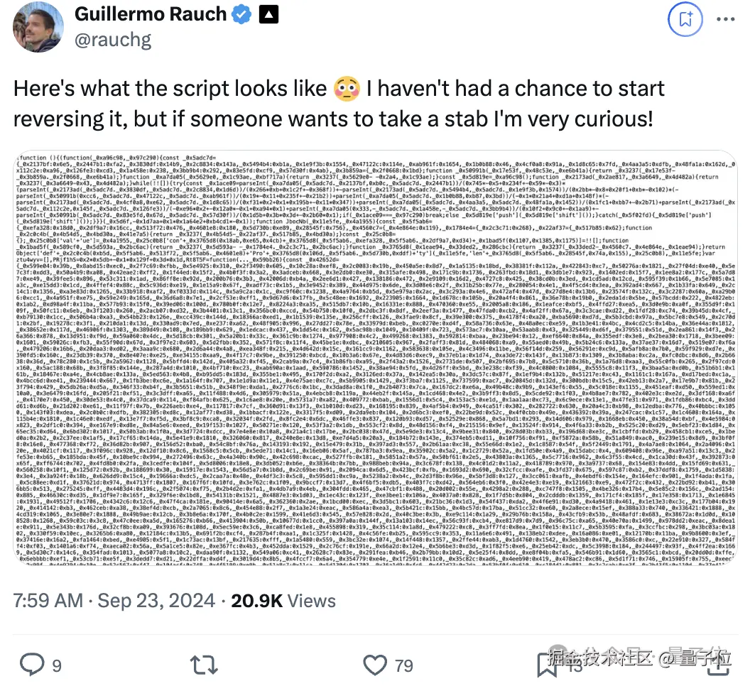 Guillermo Rauch 晒出了脚本,表示还没有机会开始反向工程。