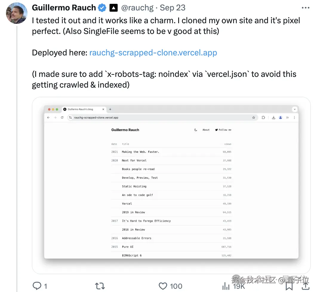Guillermo Rauch 亲自试了一下,表示效果非常好: