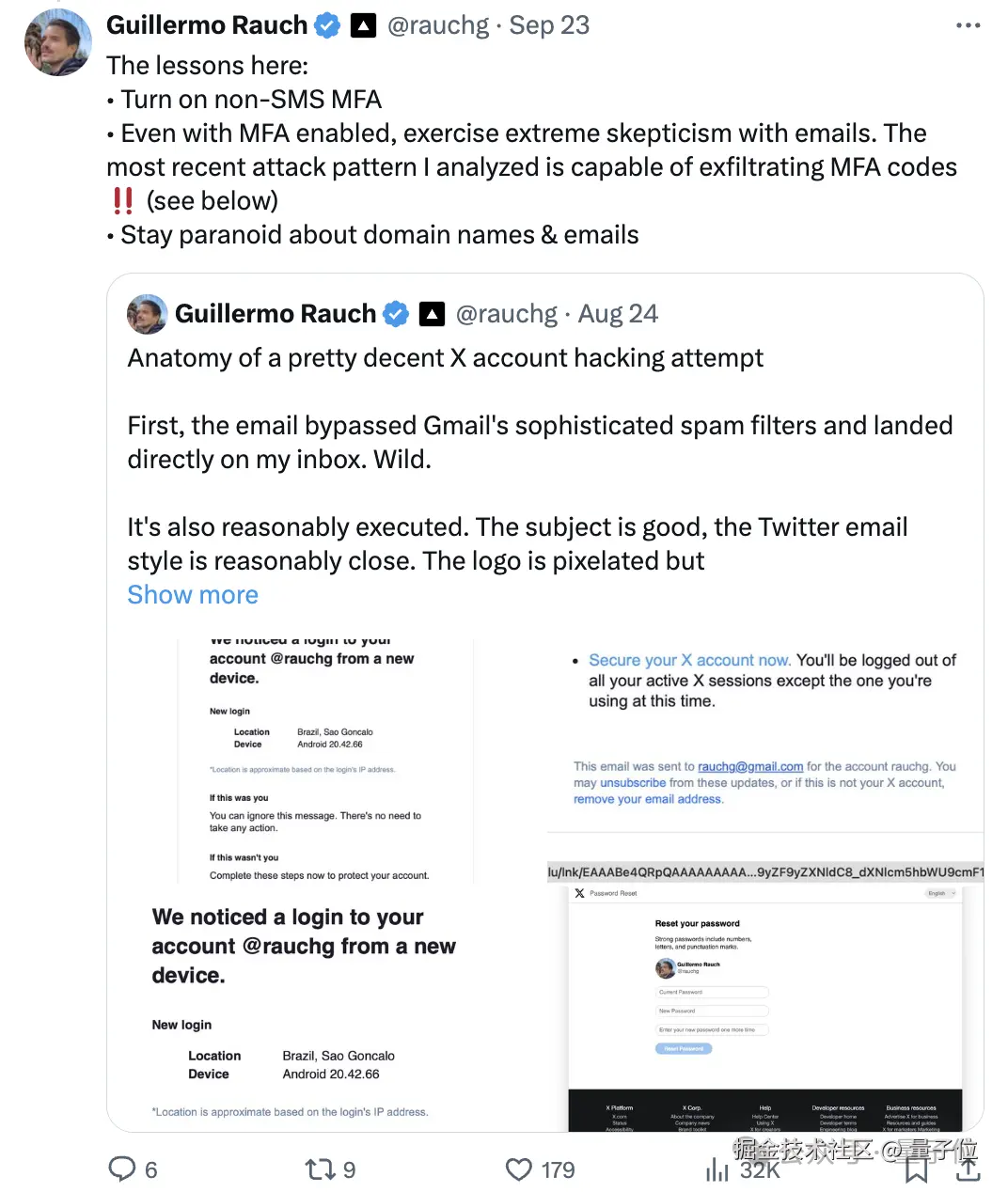 最后 Guillermo Rauch 进行了一些反诈经验总结: