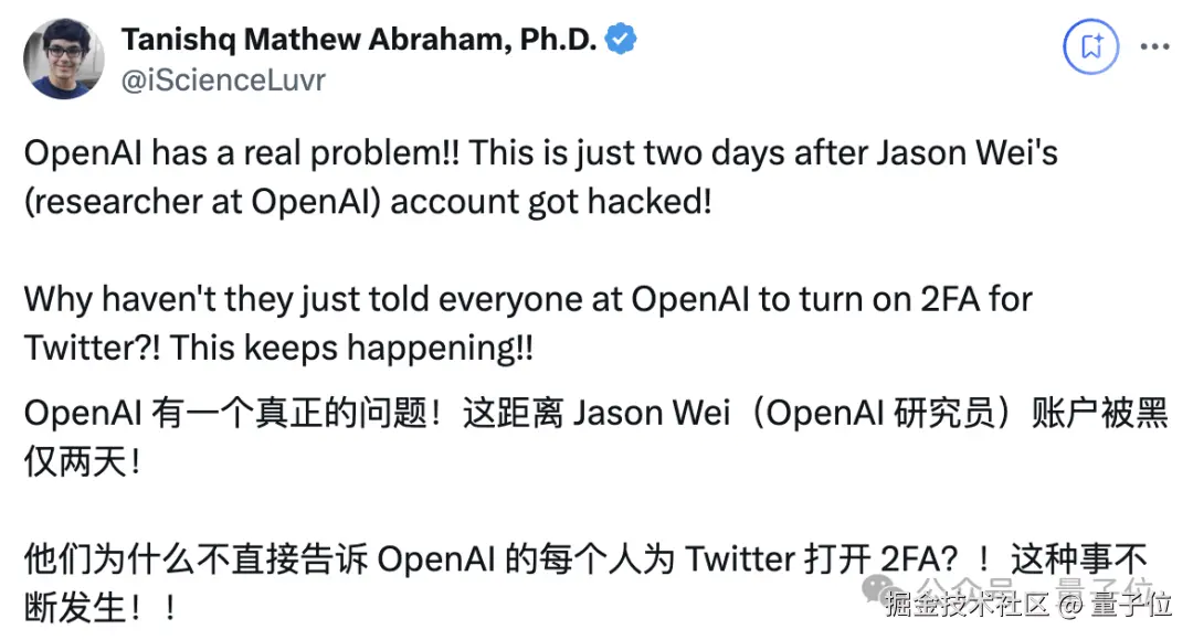 OpenAI 这次被盗号发布钓鱼信息也是给大伙儿提了个醒。