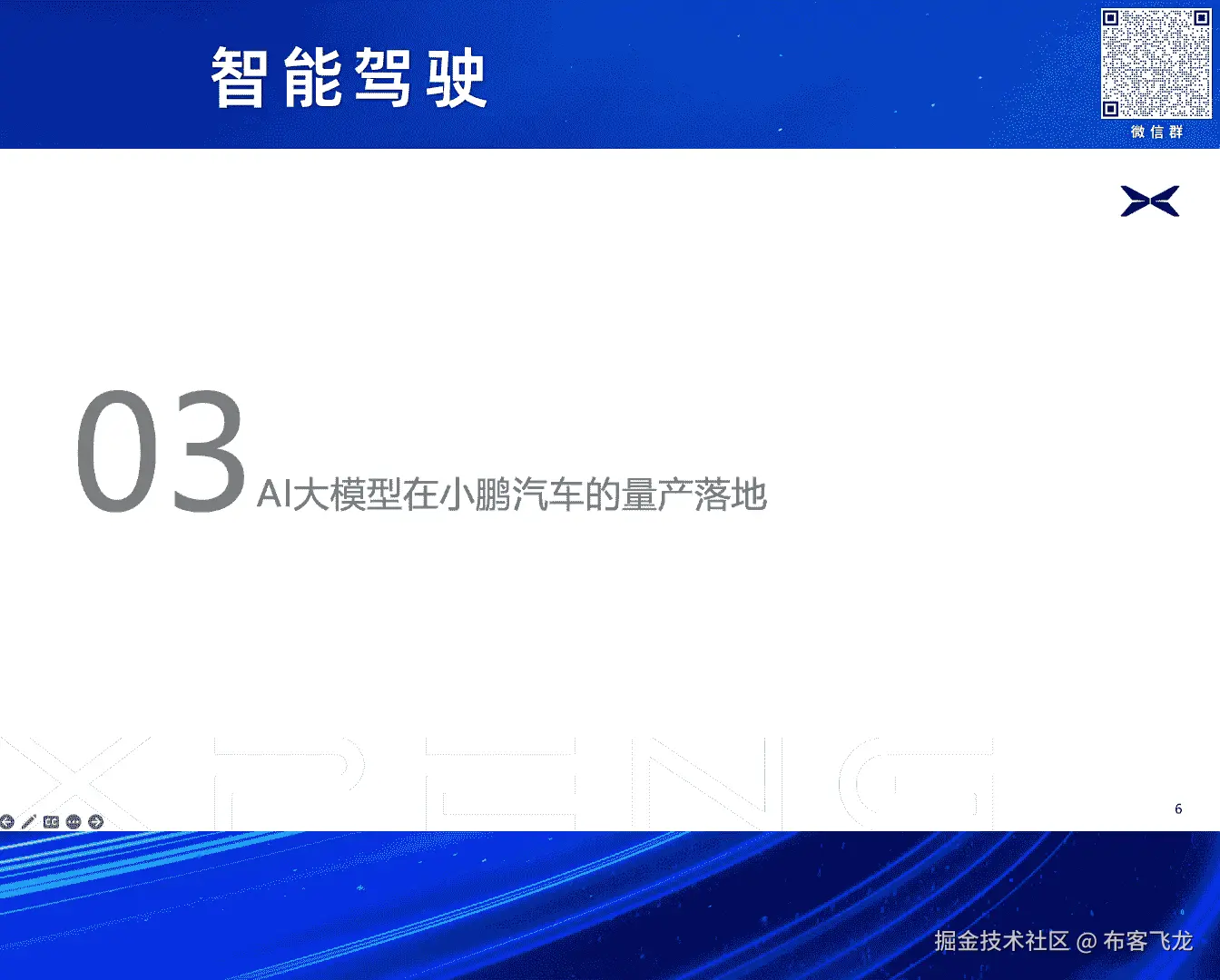 我们并不是一个算法公司,我们所有的一切都是奔着量产,好现在跟大家来报告一下,AI大模型在小鹏汽车的量产落地的情况呃。