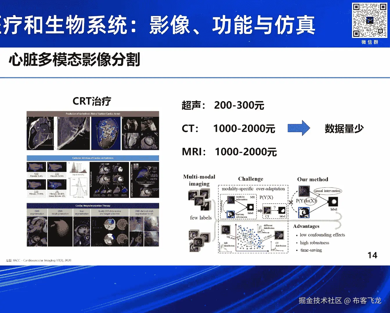 比如超声大概200多块钱,CT是1000多块钱,MRI大概是1000到2000这样扫描的东西,那你这数据量在一个中心,其实收集起来就很难,我们就希望用Metal link的方式,把不同模态之间的数据。