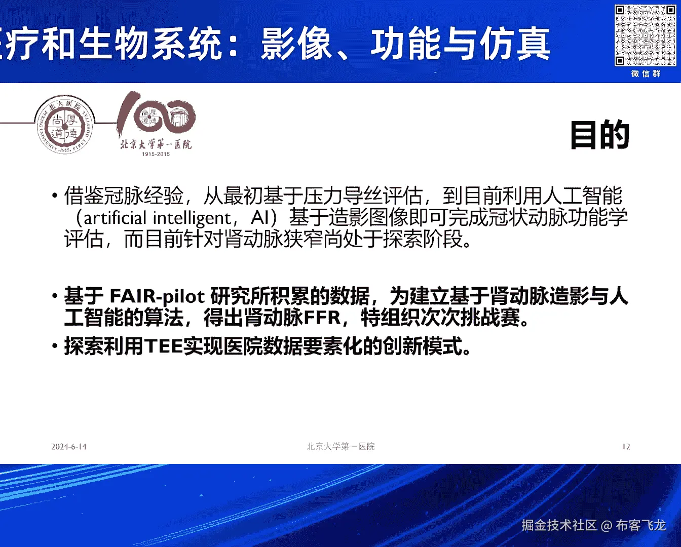 所以呢这个我们无论从北大医院哈还是从科室,其实很早也特别关注和参与到,这个这个这个技术里面来哈,所以我也呃借助于这样一个这个特别好的机会,有幸跟大家汇报一下我们自己的工作哈,啊这这个还是说临床需求哈。