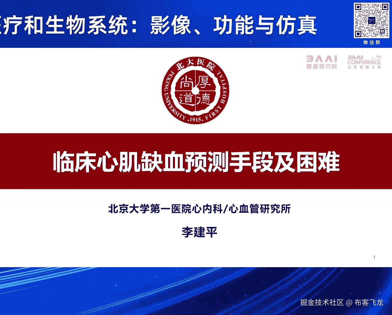 2024北京智源大会-智慧医疗和生物系统:影像、功能与仿真 - P4:临床心肌缺血预测手段及困难:李建平-主持人:马雷 - 智源社区 - BV1VW421R7HV