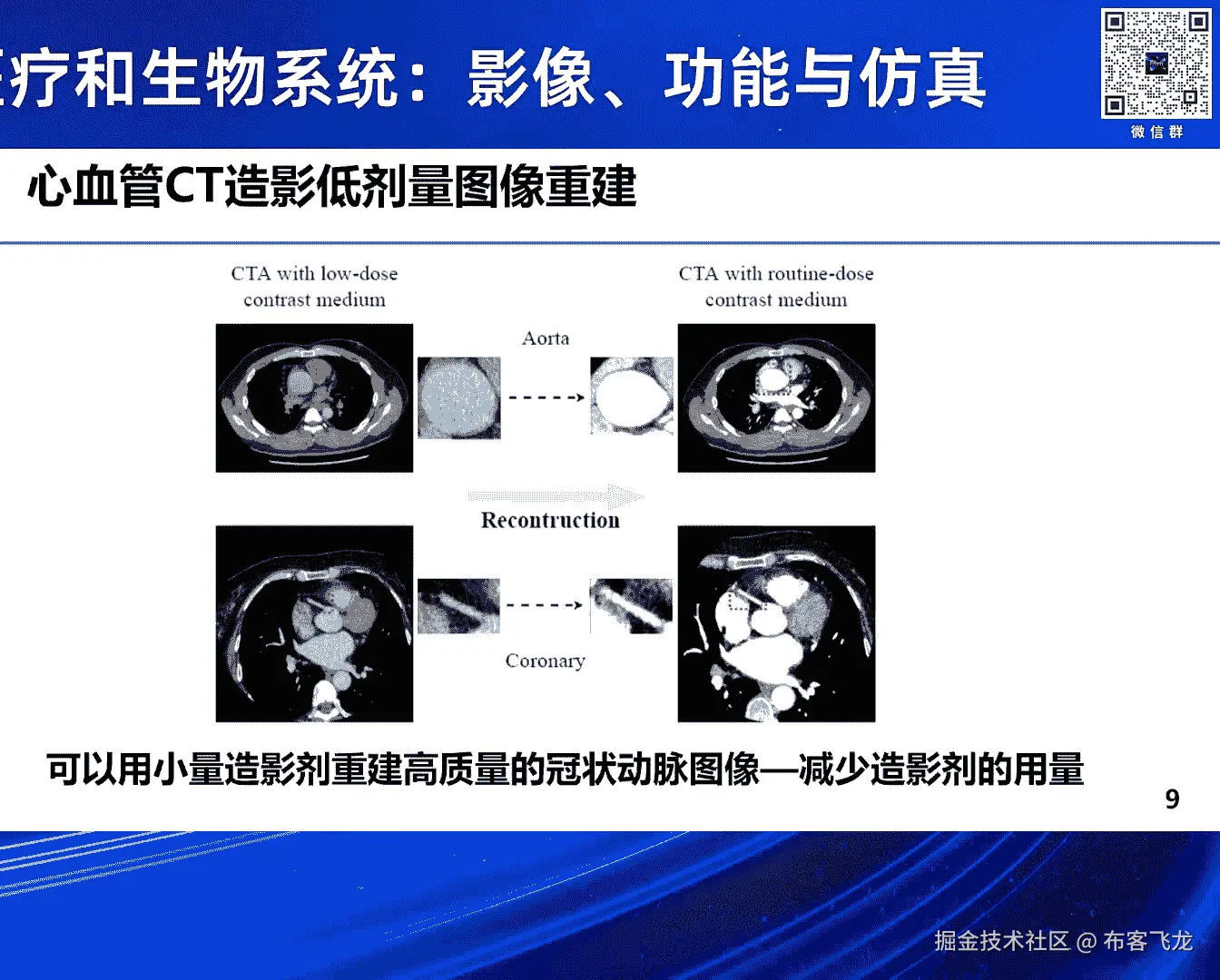 重细高质量的这个冠状动脉的这个图像,这样的工作以后能重建起来,那至少不是说假设能减少到50%,那就意味着这个整个照影剂,在安生医院的话,那至少可以减少一半。