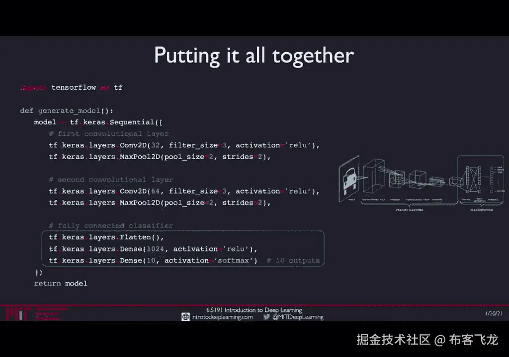 这是我们在定义时要执行的操作,使用我们获得的这些功能实际上执行了图像分类任务,通过卷积非线性和合并,然后将那些学习到的特征传递给,完全连接的网络或密集层,例如我们在课程的第一部分中了解到的,第一堂课。