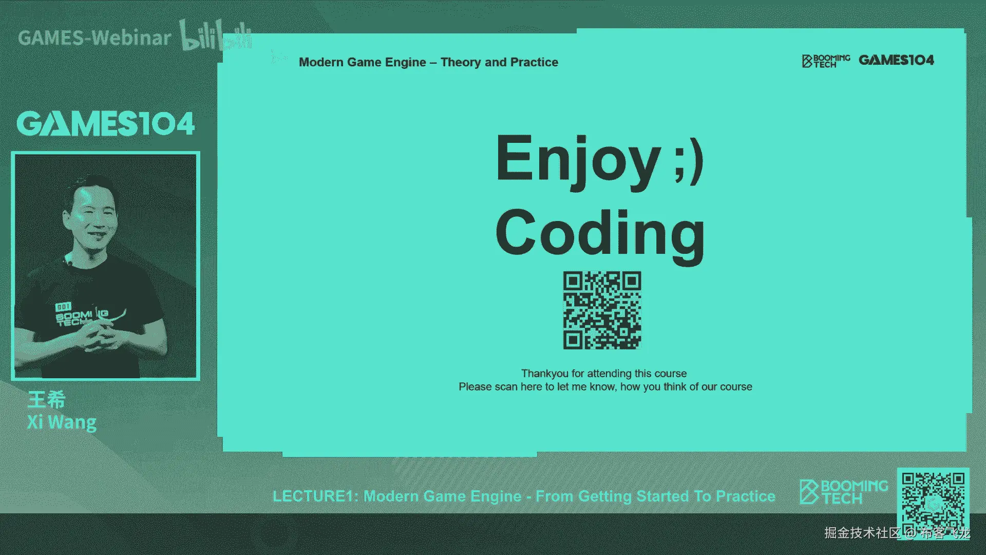 我们也很希望就是说这个我们的games,104课程上完之后,我们的每个同学人手一个自研引擎,这也是我们104引擎,大家一起做的一个flag,如何好的,那今天呢我的课程的主体也就到此为止。