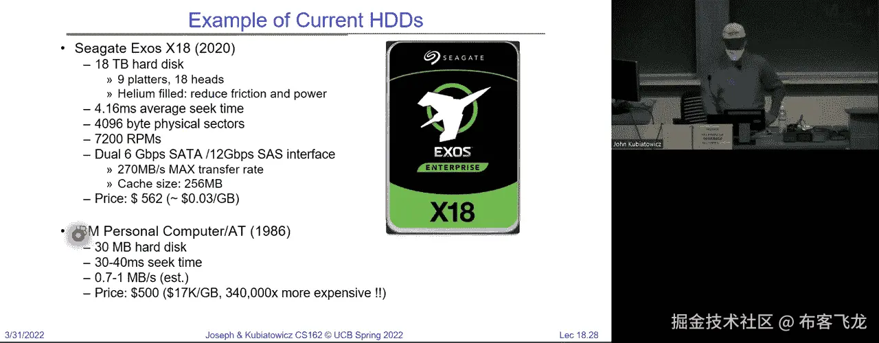 spinning disk okay um there's no moving parts no rotator seek okay so the seek and rotational。