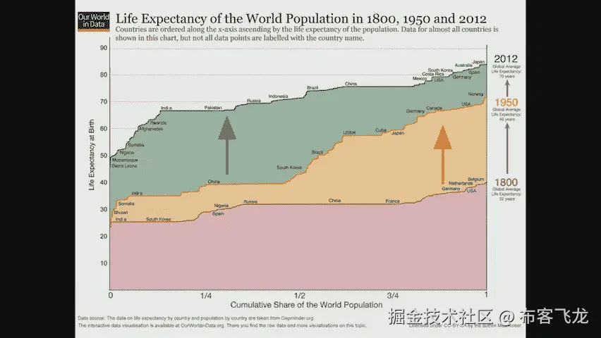 或者同样价格的生命等等所有这些不同的国家,顺便说一句,这都来自Gapminder,这是一个很棒的数据可视化工具,我没有时间给你看,但你可以点击那里的个别行,在滑块上滑动你所说的那个时代,数据移动。
