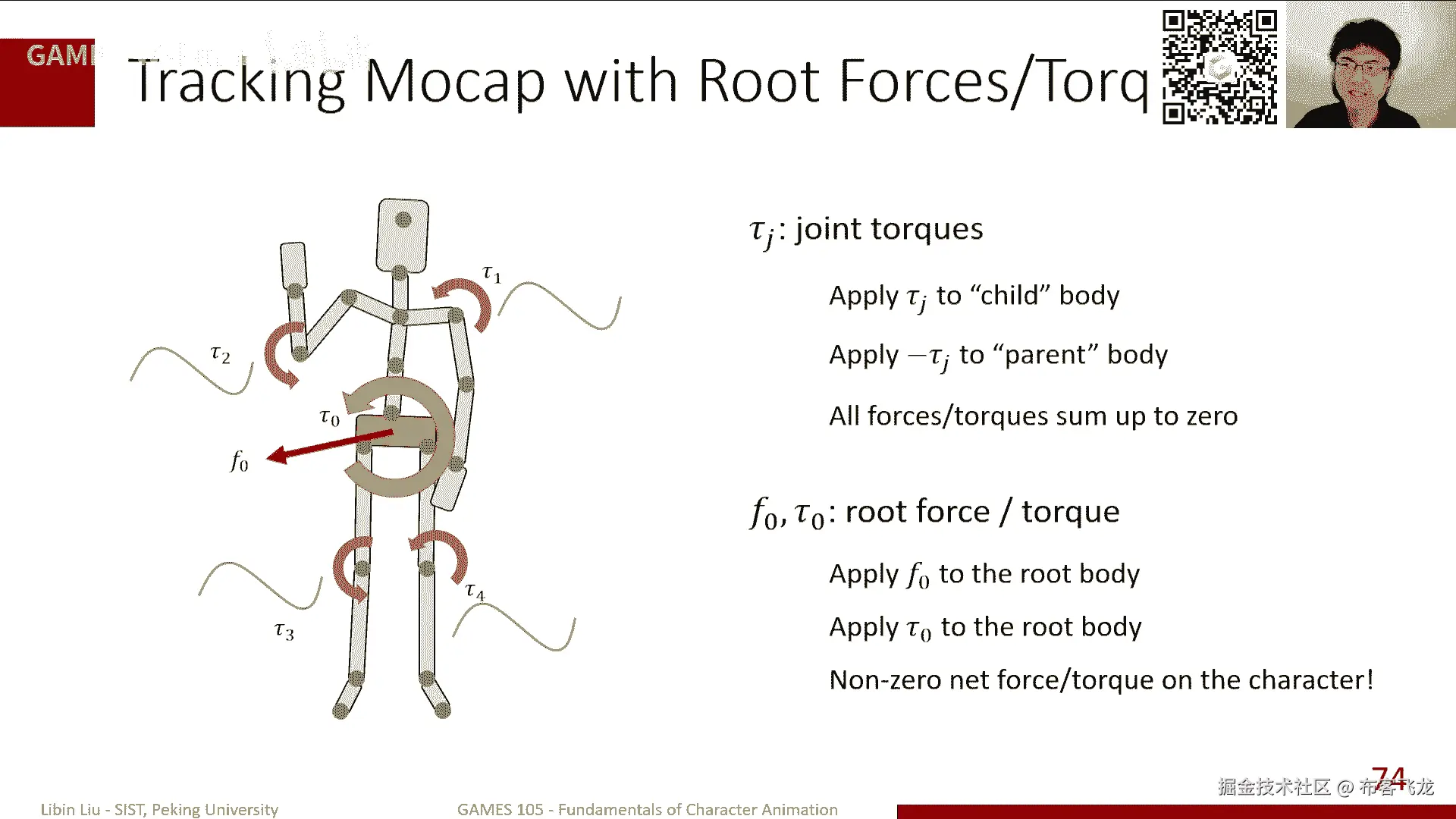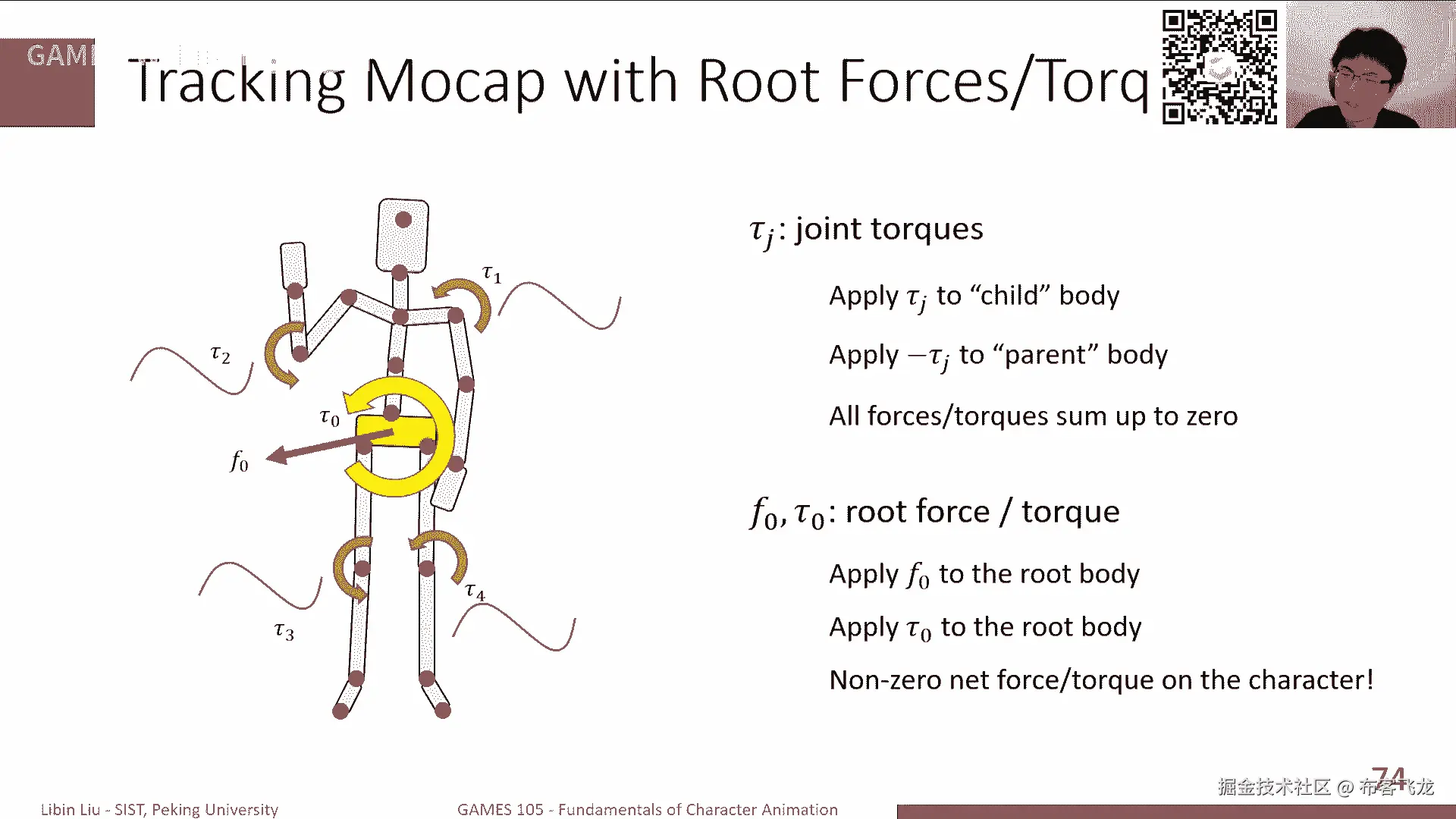我们在这个对这个角色啊,进行这个控制的过程中,我们可以通过比如说通过pc control比例微分控制啊,去计算相应的关节力矩,然后这个关节力矩啊,其实是如何去加在我们这个角色身上,钢铁啊。