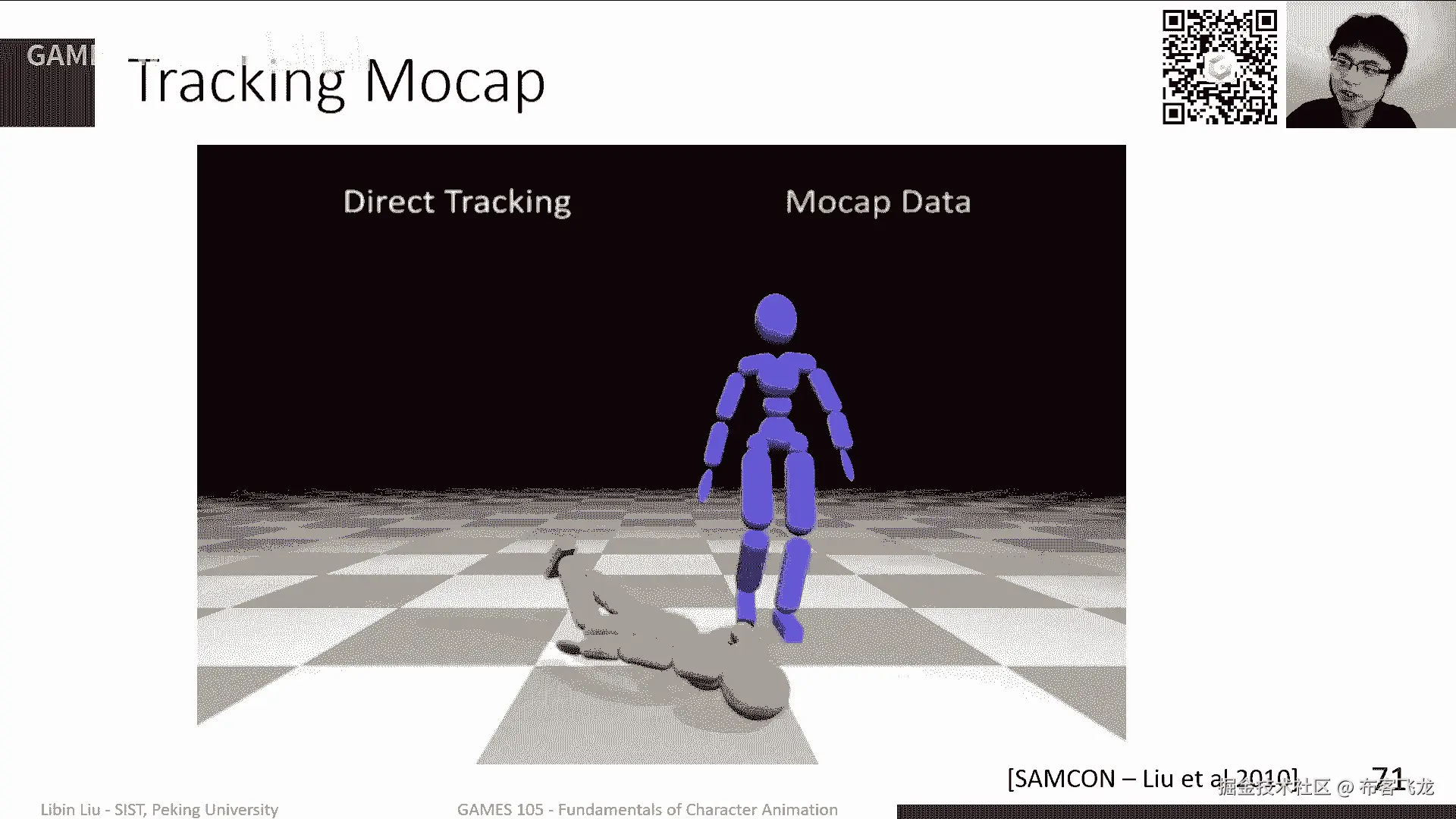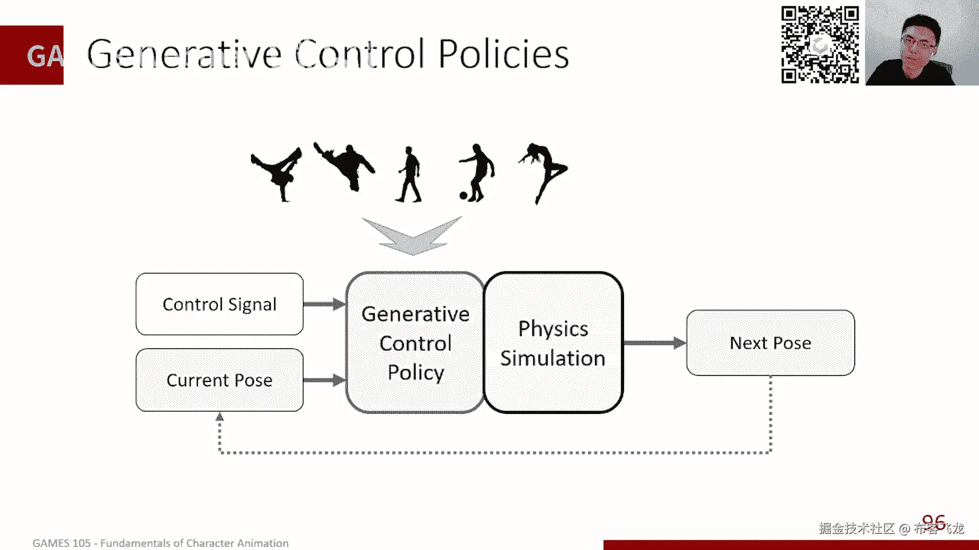 95年的一个工作,就是说我可以通过手工设计啊,对每一个动作专门做一个手工设计,让这个角色能够用这个对应的跟踪控制,然后计算器关节列举,让这个角色能够产生这样的动作,那当然我们其实也提到了。