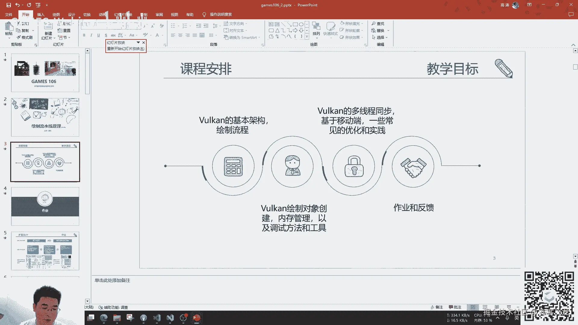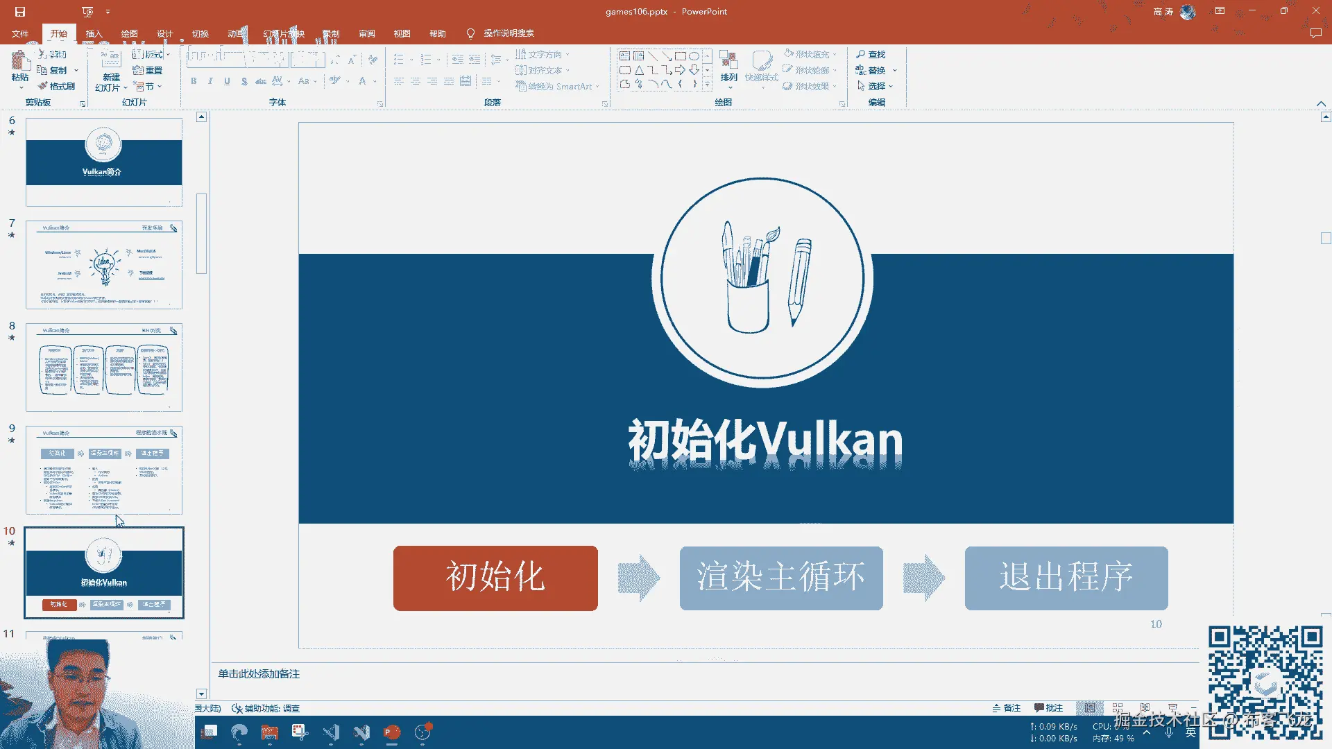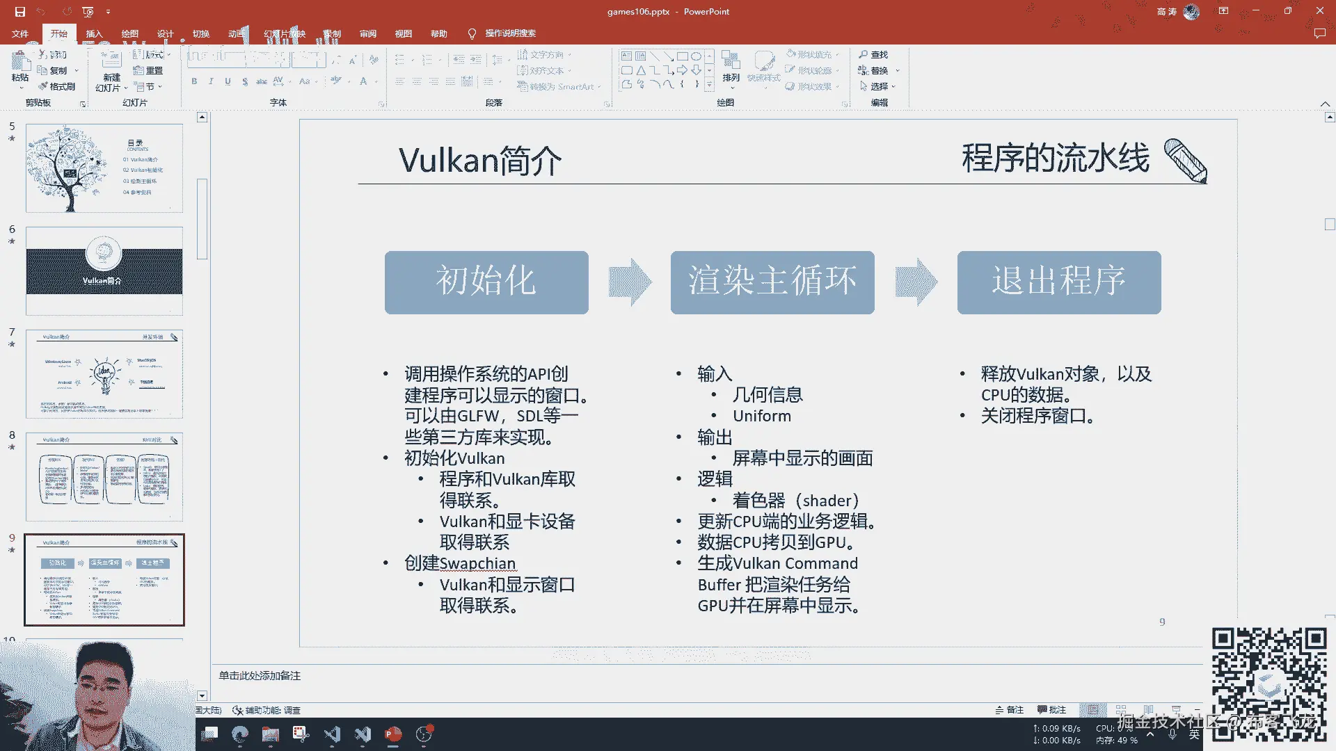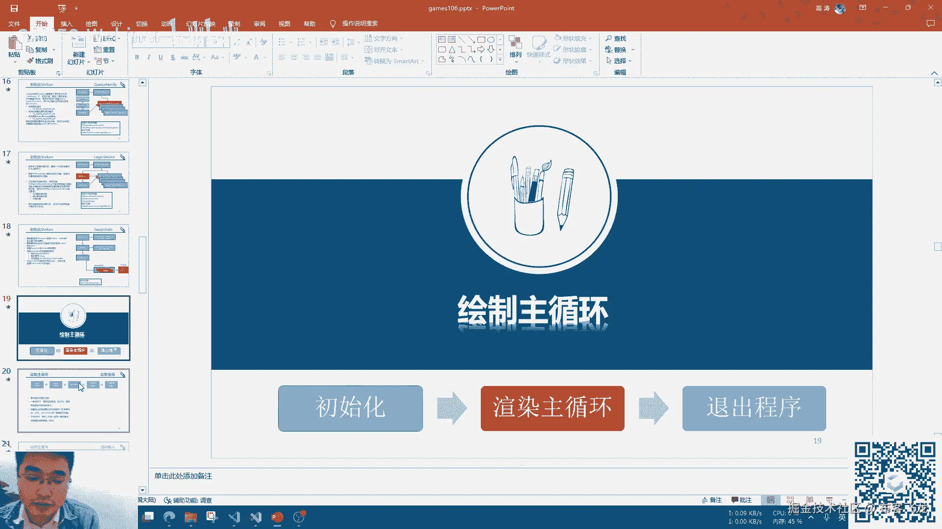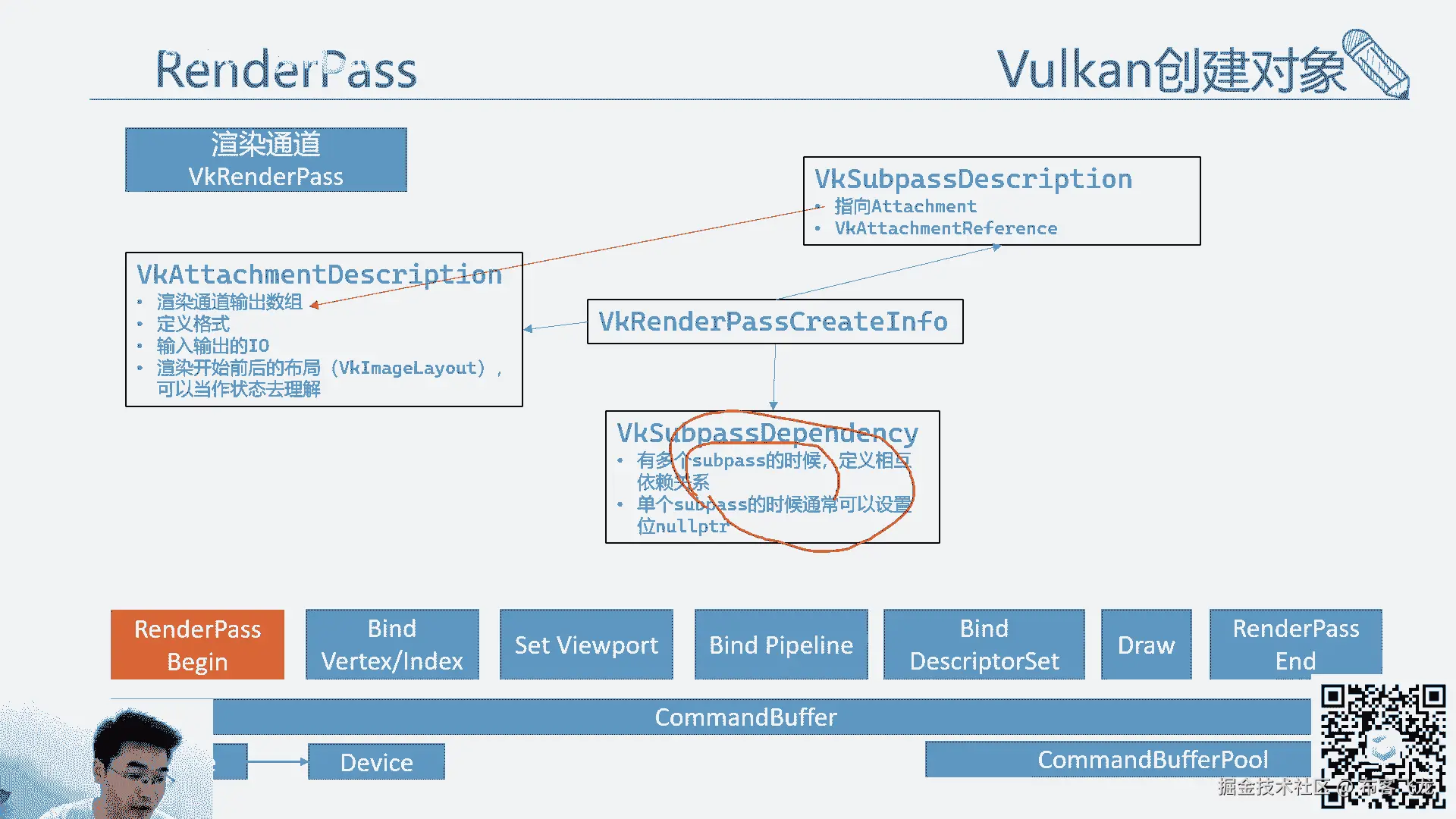 然后working的绘制,这个就我们刚才讲了,有那么多的那个流程,那么working的绘制其实大致也可以概括成这样,简单的一个是绑begin command buffer。
