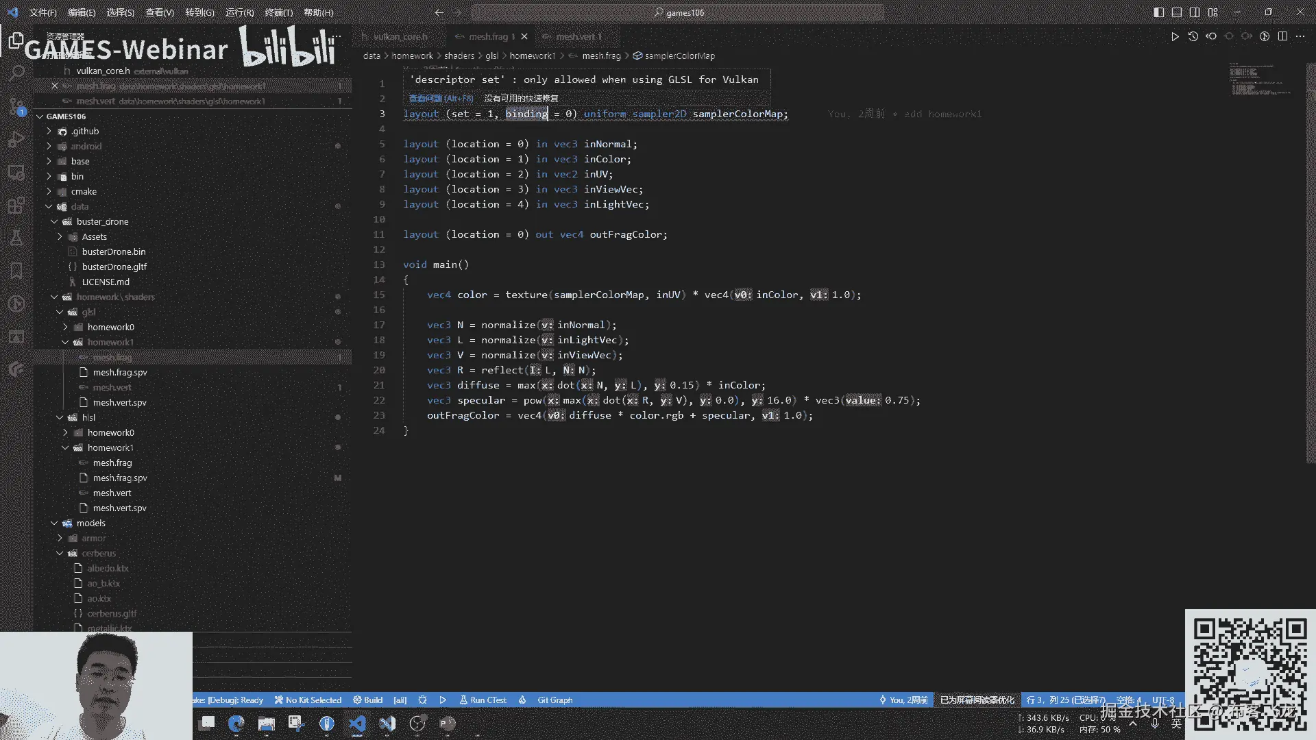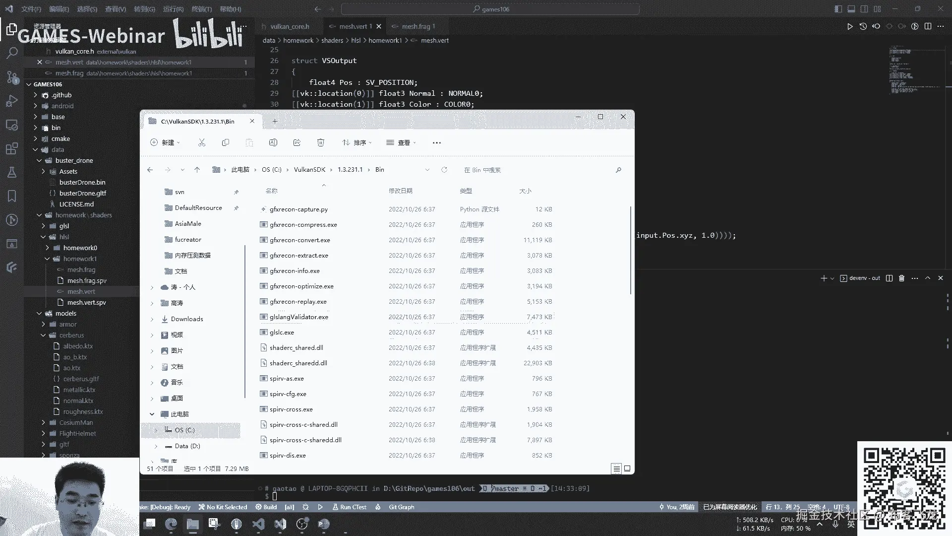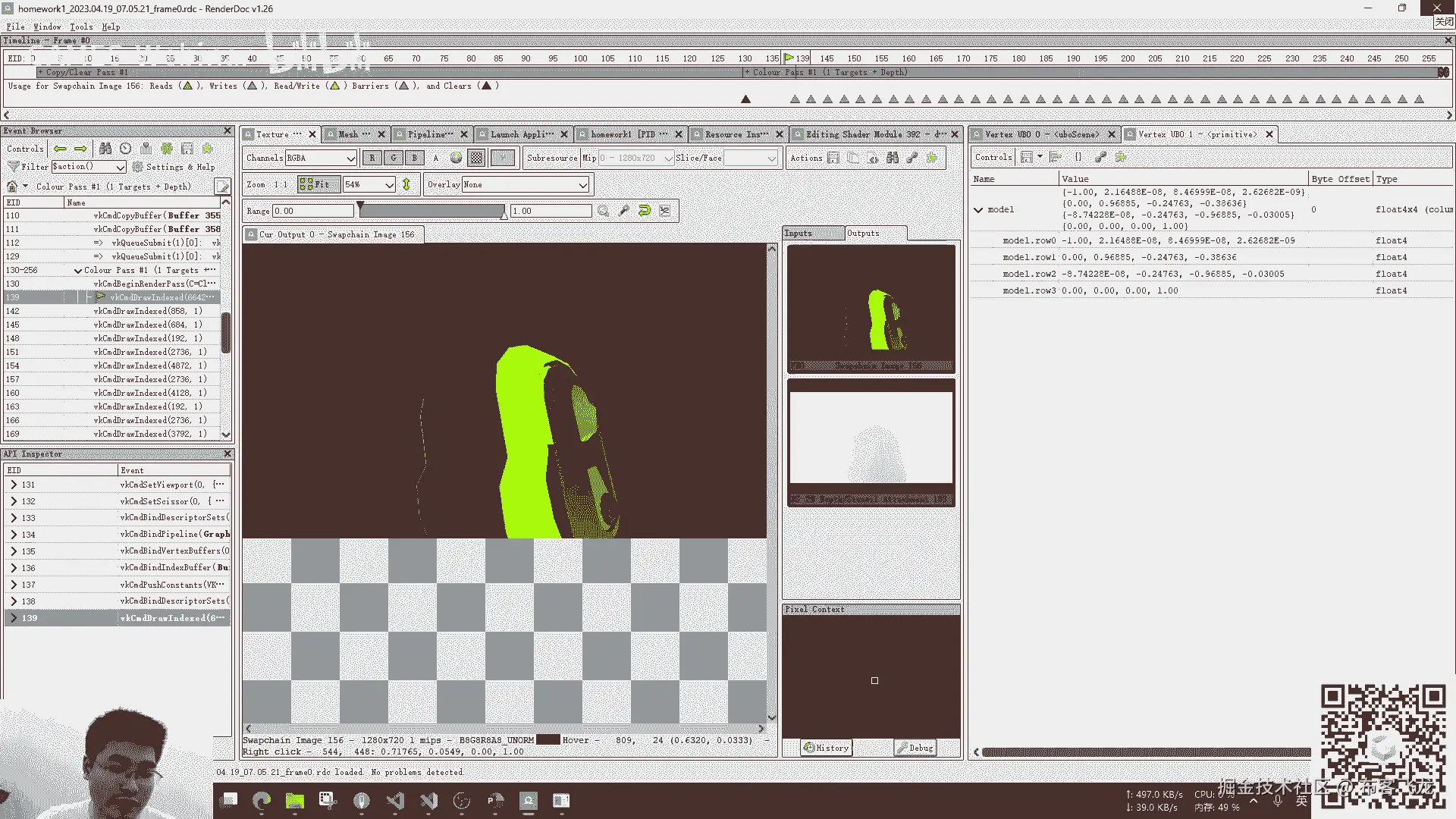 你的vertex shader,你的输入的uniform,你的矩阵view,然后你的那个就是push constant,然后还有你的写的是什么样子的,甚至你还可以修改你的shader。