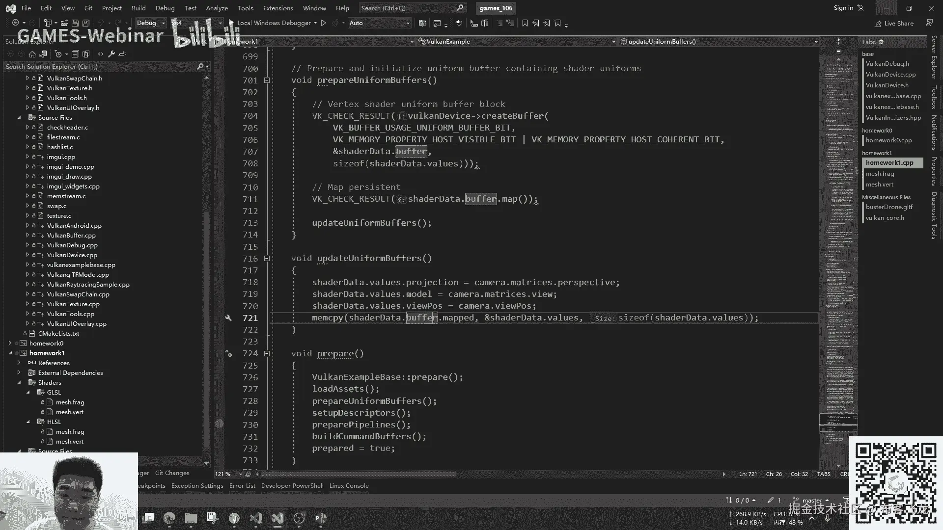 的一种更新,我们的课程其实他也是这么实现的,我们可以看一下我们的课程里面的渲染,有个update uniform buffers,ok这个数据直接拿过来,然后这个是八核的对象指针。