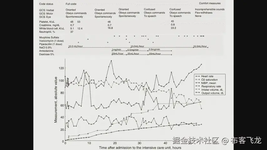 五个,每次入场的图表条目,所以你知道,每次接纳数以千计的图表事件,我们还跟踪输出,导尿管可以让你的膀胱引流,你没有有意识地去洗手间,所以他们收集这些信息,有一点,九百万个关于你膀胱流出多少液体的录音。