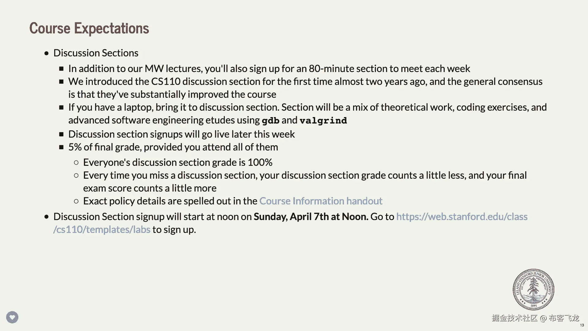 decide not to attend lecture what what that means and as we go along。 CS110。