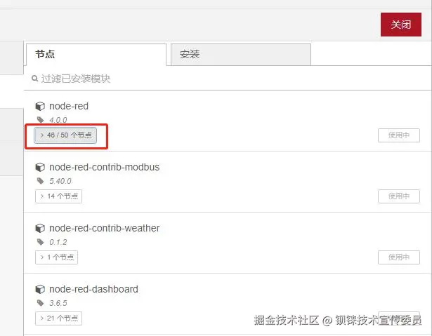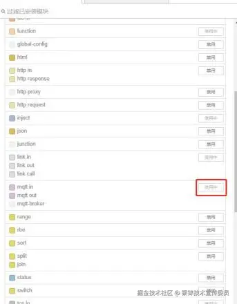 设备启动,执行 node-red 程序,将上位机登录到node-red 部署系统。 node-red 自带 mqtt 通信协议模块,执行以下操作,启用mqtt 模块。