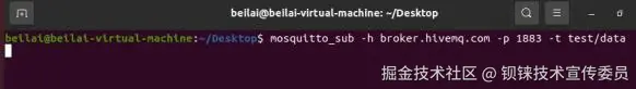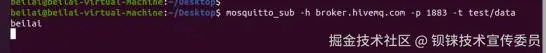 Host# mosquitto_sub -h broker.hivemq.com -p 1883 -t test/data