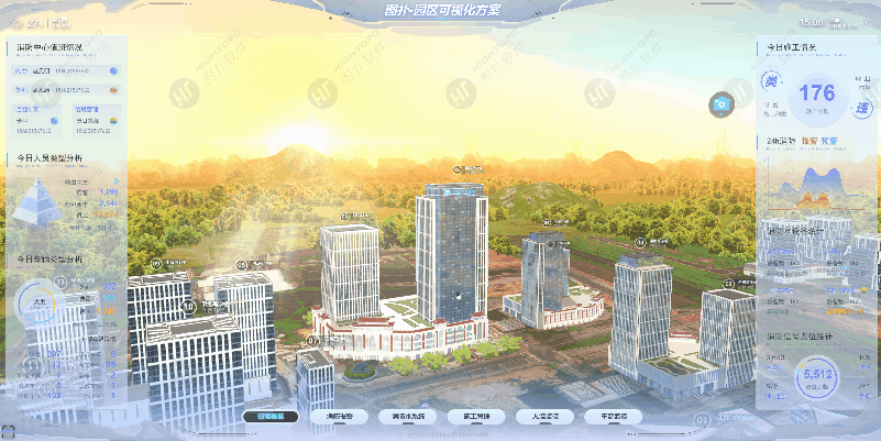 图扑软件 HT 的案例中有许多白天黑夜效果。这种效果在各类不同的项目中得到了广泛的应用和认可。