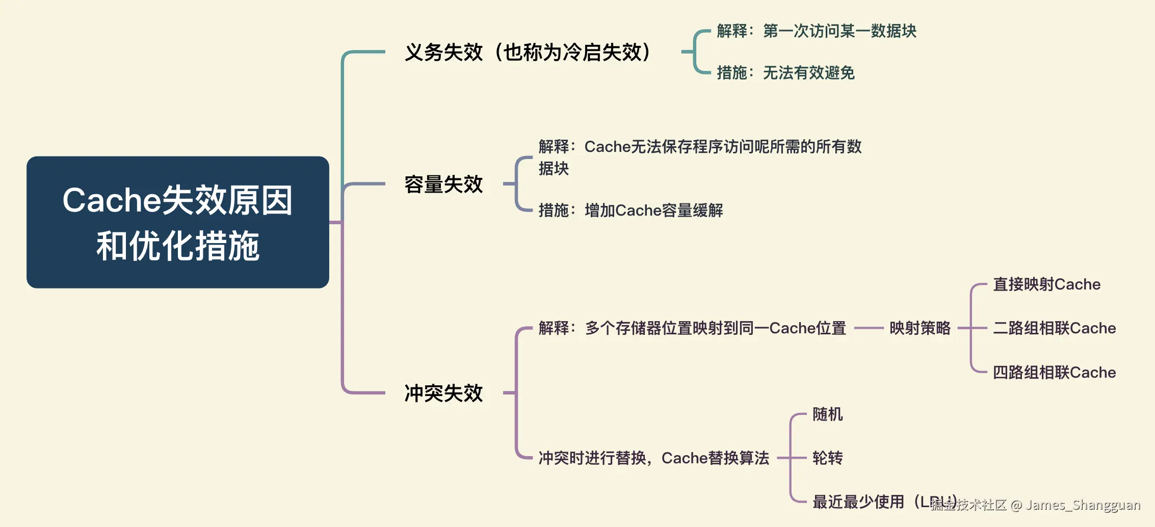 - 冲突失效:即多个存储器位置映射到同一个 Cache 的位置(映射策略);冲突时进行替换(替换算法)。
