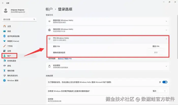 第二步: 在设置菜单中,点击 【账户】 ,然后选择 【登录选项】 。在 【登录选项】 中找到 【密码】 ,点击 【更改】 来设置或更改您的锁屏密码。