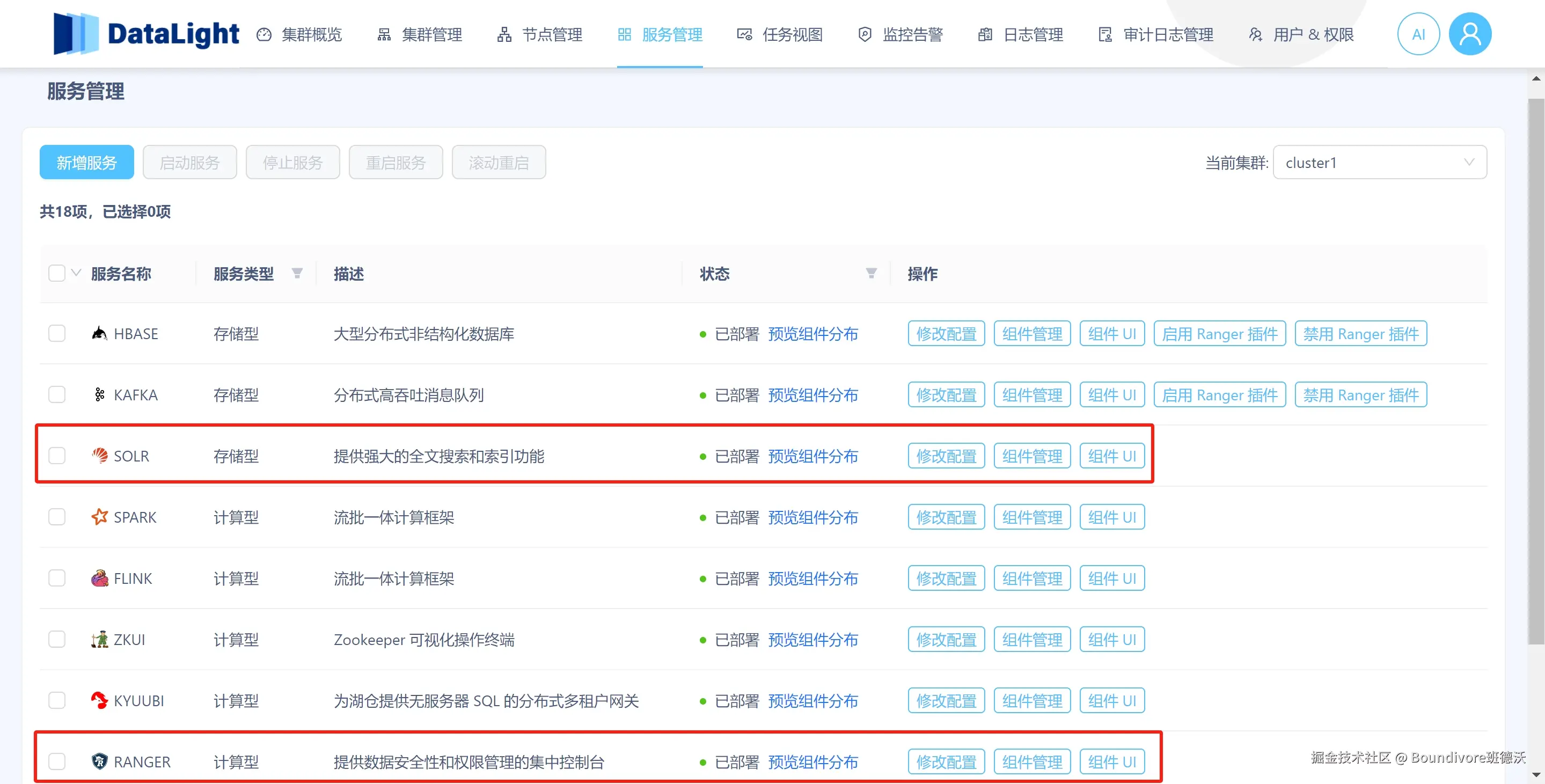DataLight(V1.4.5) 版本更新,新增 Ranger、Solr
