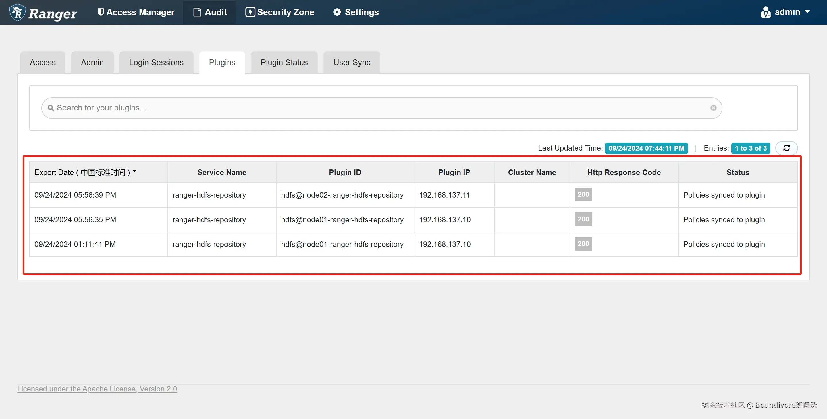 在平台上查看各 Ranger 插件的运行状态,及时发现和处理异常情况,保障系统稳定运行。