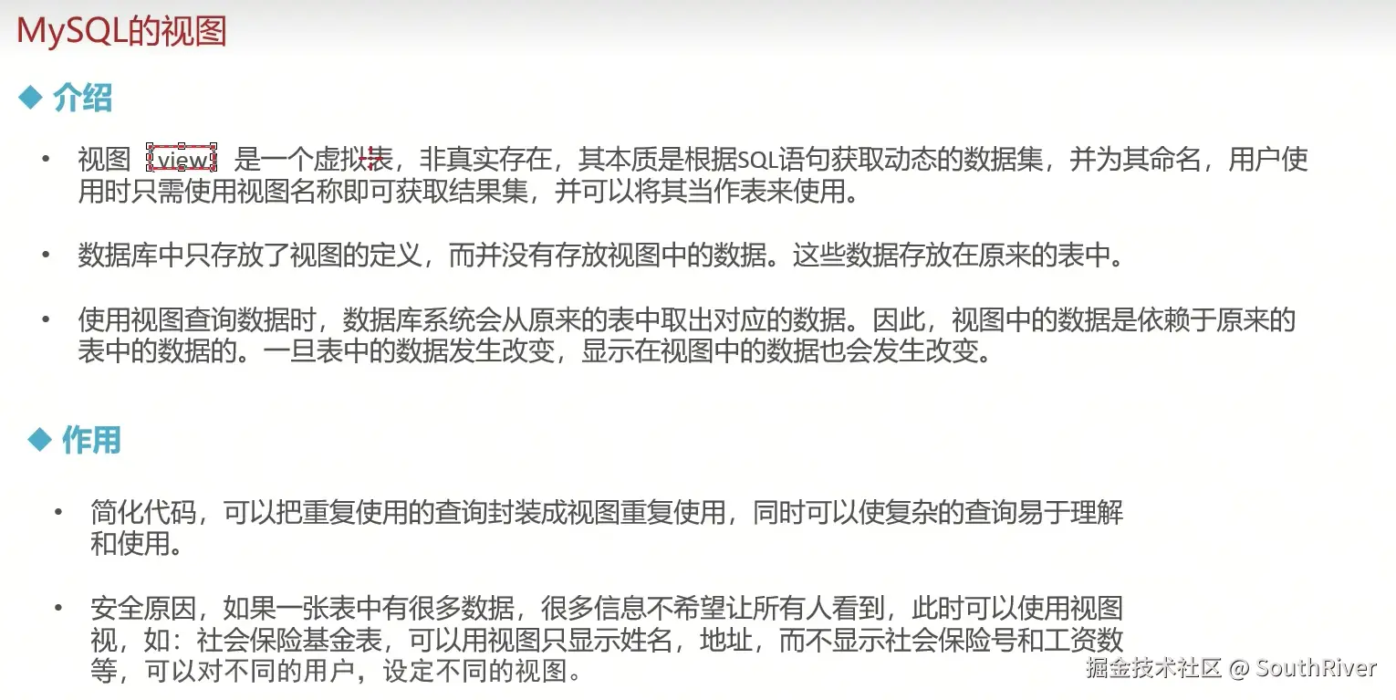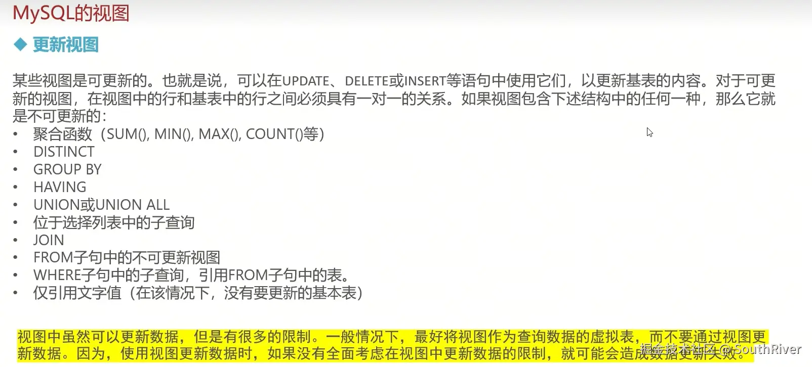 MySql学习笔记_第二篇 SouthRiver 2024-09-25 47 阅读1分钟 5. 函数 5.1 数学函数 5.2 字符串函数 5.3 日期函数 5.4 控制流函数 5.5 窗口函数 6. 视图 概念:临时中间表